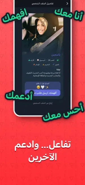 يعتمد التطبيق على موجز عاطفي فريد باستخدام الإيموجي، حيث يمكنك مشاركة حالتك الشعورية واستكشاف أشخاص آخرين من خلال اهتماماتهم وتعبيرهم العاطفي، ثم إرسال طلب تواصل باختيارك.
