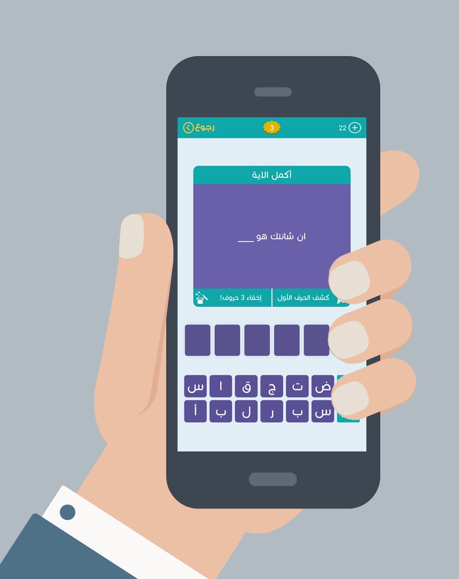 - إظهار الحرف الأول، إخفاء ثلاث حروف أو طلب مساعدة من صديق عن طريق خاصية نشر الأسئلة على المواقع الاجتماعية أو تخطي السؤال . للبحث عن اللعبة باللغة العربية :