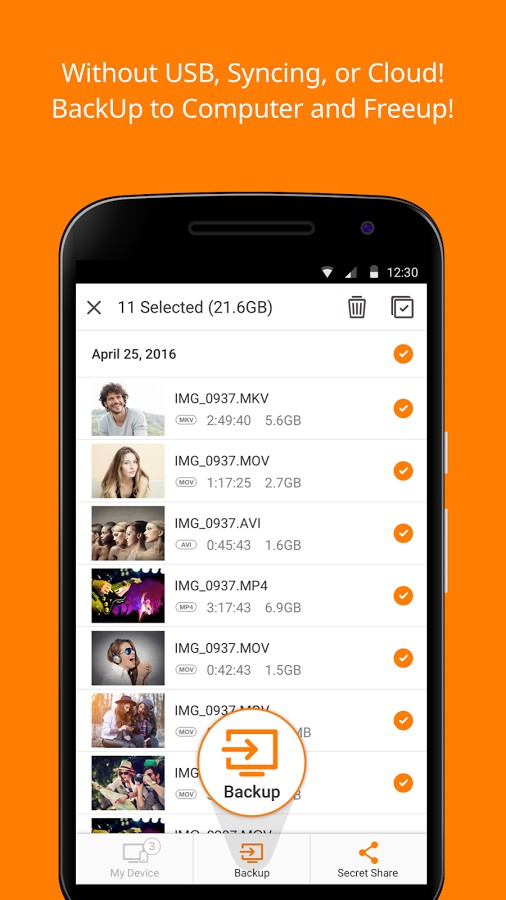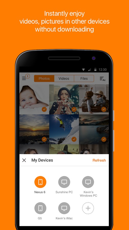 Stream and transfer all your media files stored on your computer, tablet or other smartphone. Instant streaming of videos, photos and audio files without downloading or cloud storage! Also transfer large files without size limits!