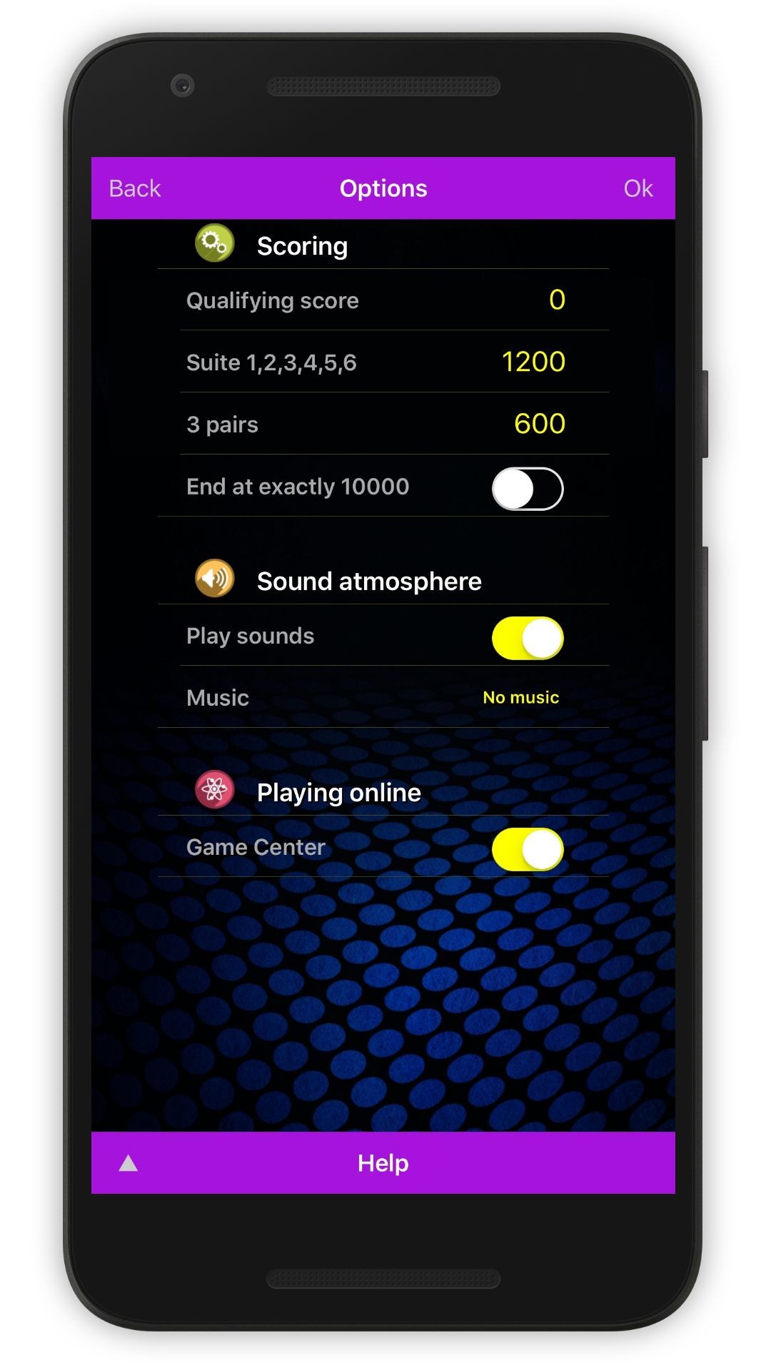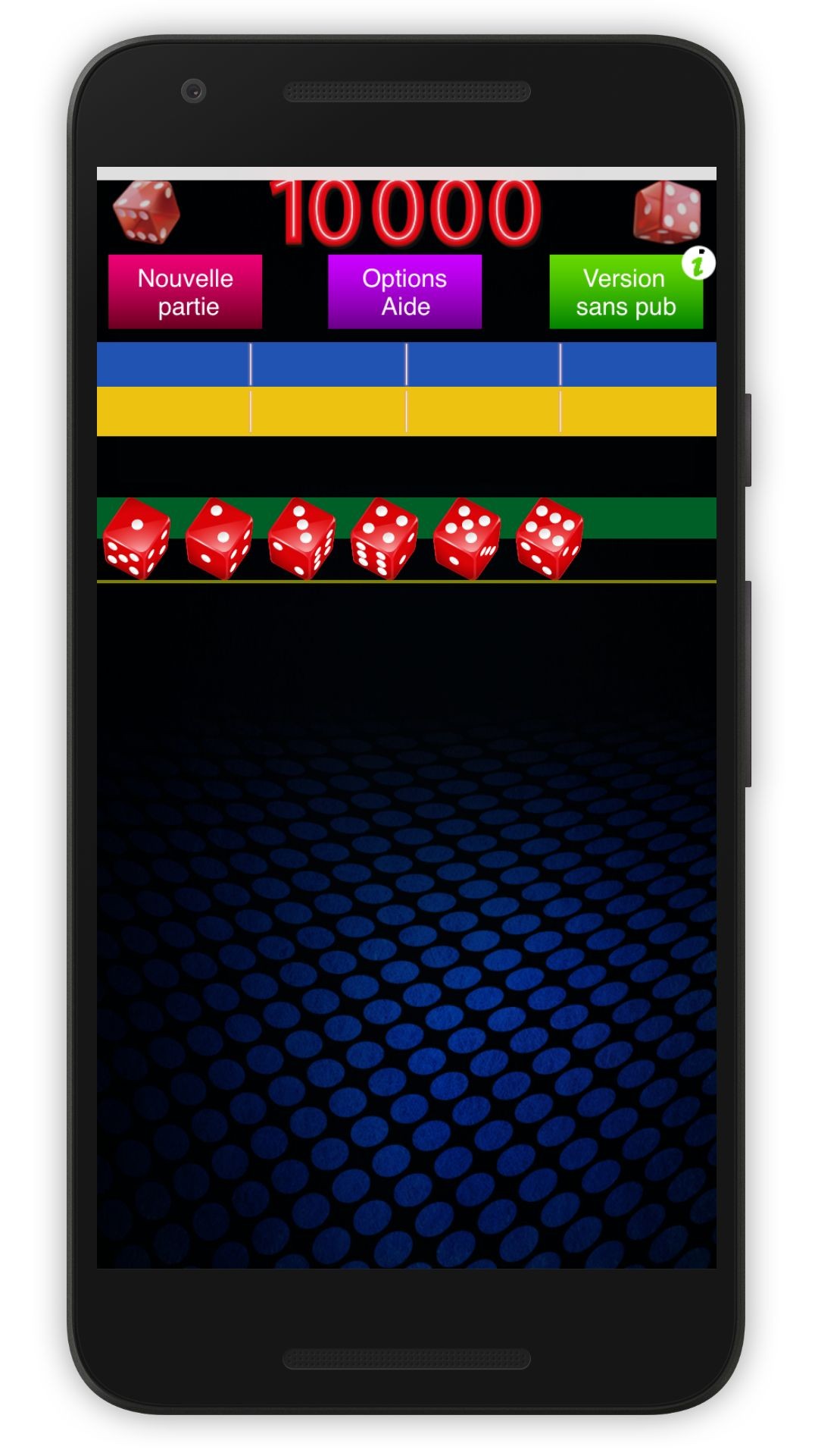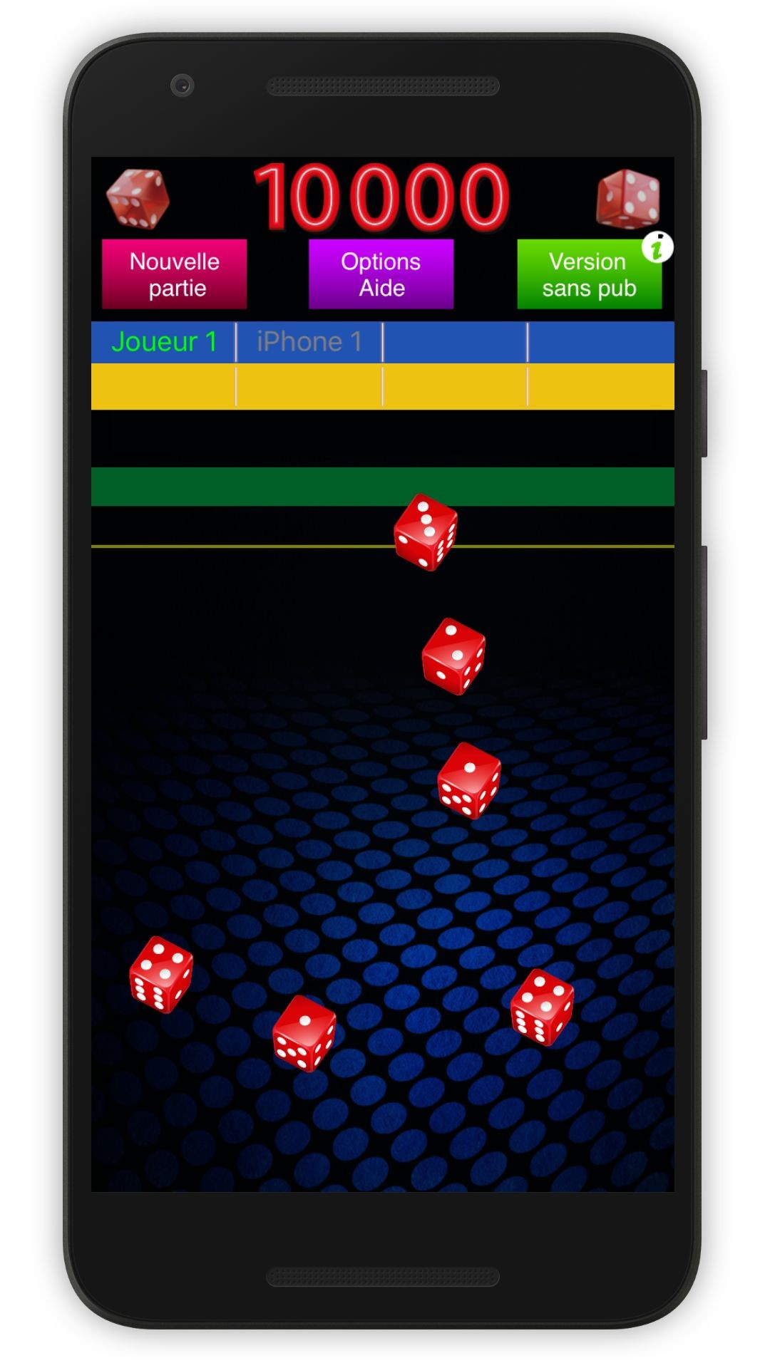 The game of 10000 is a popular dice game that exists in many forms. This version uses 6 dice and some criteria can be adjusted to meet various rules that exist around the world.