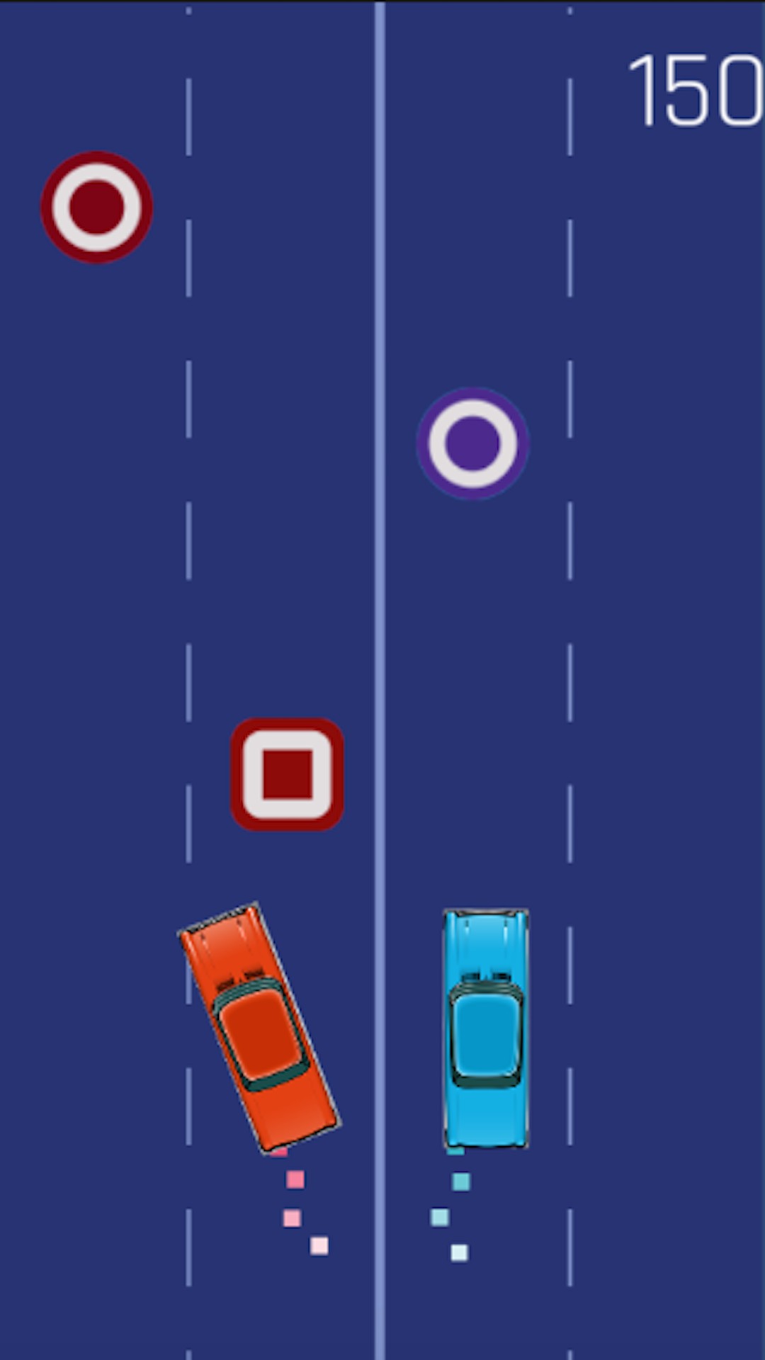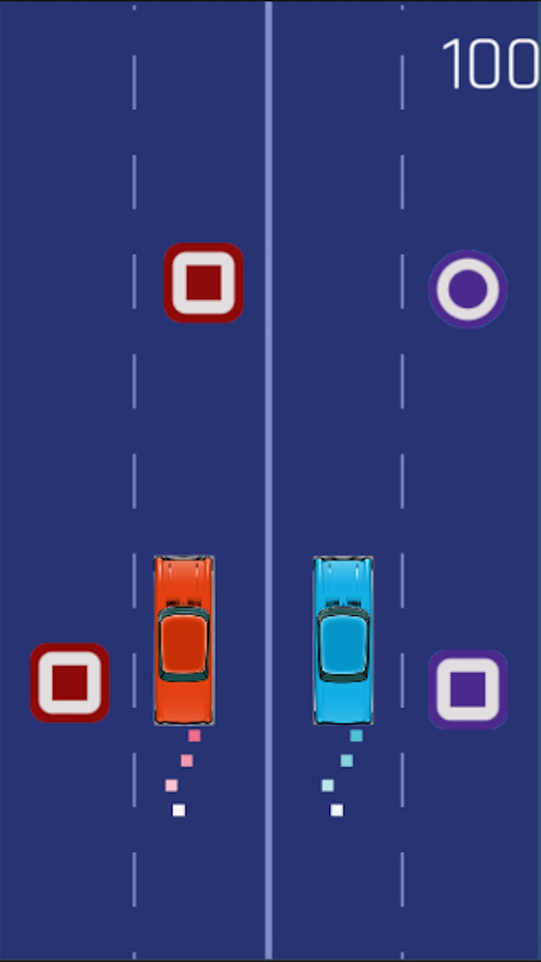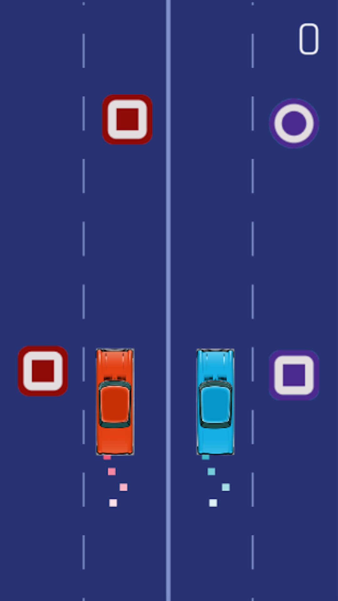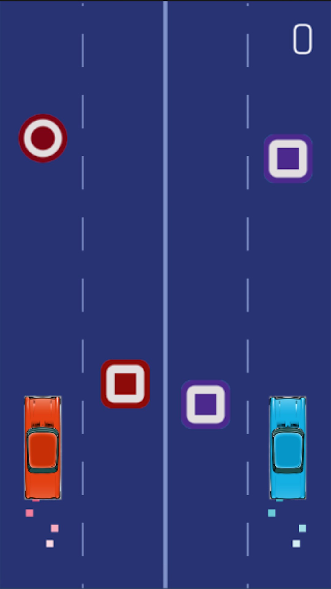 Control both the blue and the red car at the same time. Beware of the square and collect all the circles, if you miss the circle then you failed in mission.
