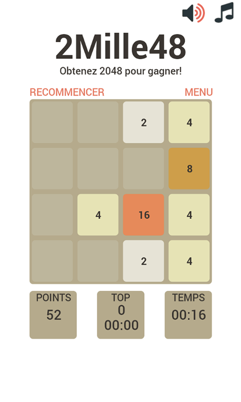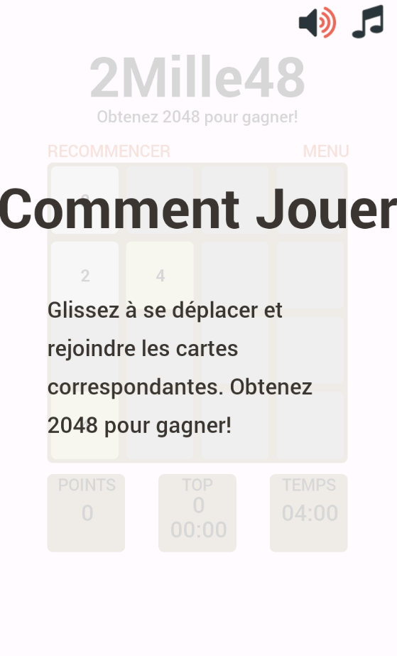 2Mille48 est un jeu amusant et de Réflexion très simple. Rejoignez les chiffres et arriver à la tuile 2048!