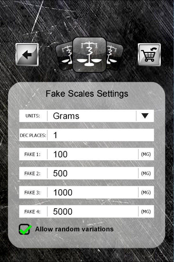 Fool your friends and family using the fake scales. Predefine upto 4 fake weight values and you can also use multi tap on the tare button to increase to other values. Simply place object on the screen and tap once. Please note the readings are not real in any way.