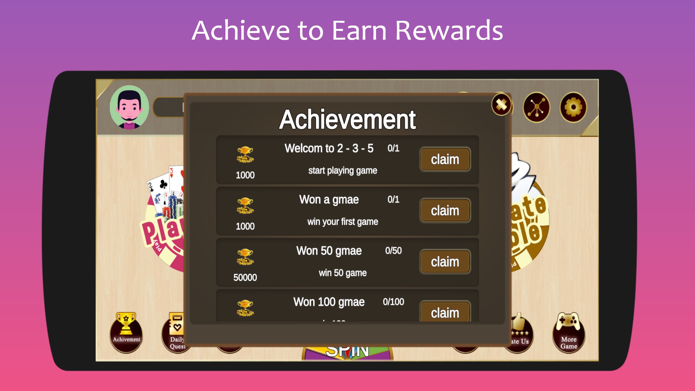 - Achievements: Shows game stats of game achievements by the two player card game.