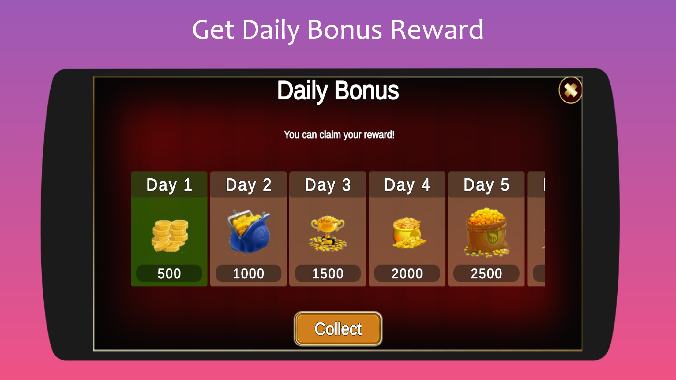 - Daily Reward: Get rewards by playing the game daily in a row.