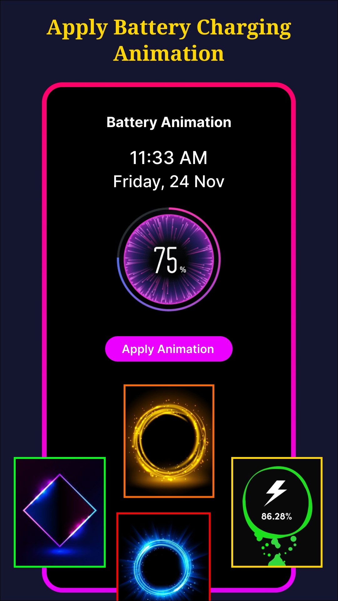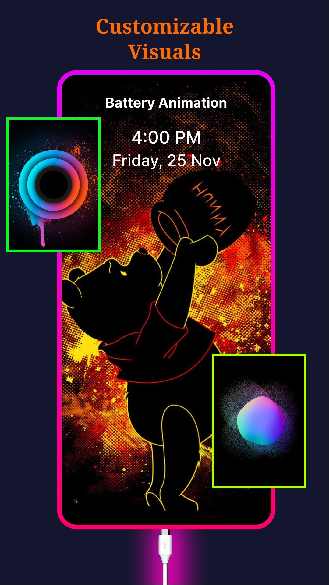 Experience a fresh aesthetic for your phone with our cutting-edge 4K Charging Animation app. Elevate your screen's appearance with our innovative battery charging animations. Plug in your device and enjoy captivating visuals, from animated animals and cartoons to mesmerizing bubbles and hearts. Our diverse selection of stylish effects adds a delightful touch to your charging experience, transforming it into a personalized and enjoyable spectacle. Say goodbye to mundane charging routines and infuse excitement into every power-up session with our dynamic 3D battery charging animations.