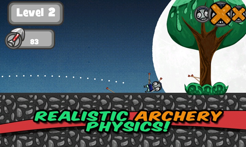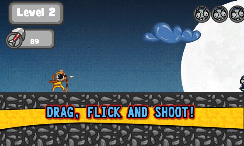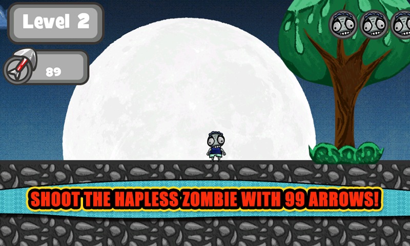 99 Arrows:Zombie is an classic archery game. Drag, Flick and shoot the Hapless Zombie with your bow and arrows.