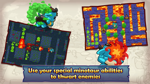 Making use of Mino’s many Minotaur abilities—including special skills such as “Fire Belch†(a deadly burp that turns enemies into ash) and “Force of Nature†(fart to stun enemies!)—is one way to stay in one piece. Another strategy is to avoid the game’s many deadly traps—such as floor spikes, giant boulders, crumbling floors, and flame throwers. Navigate the maze and locate the key (or keys!) that unlock the exit to proceed on your journey :)