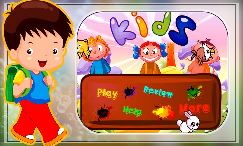 On the very first page kids will be presented with so many options, some cute birds flying around the screen and some cute animals like rabbit, playing on ground.