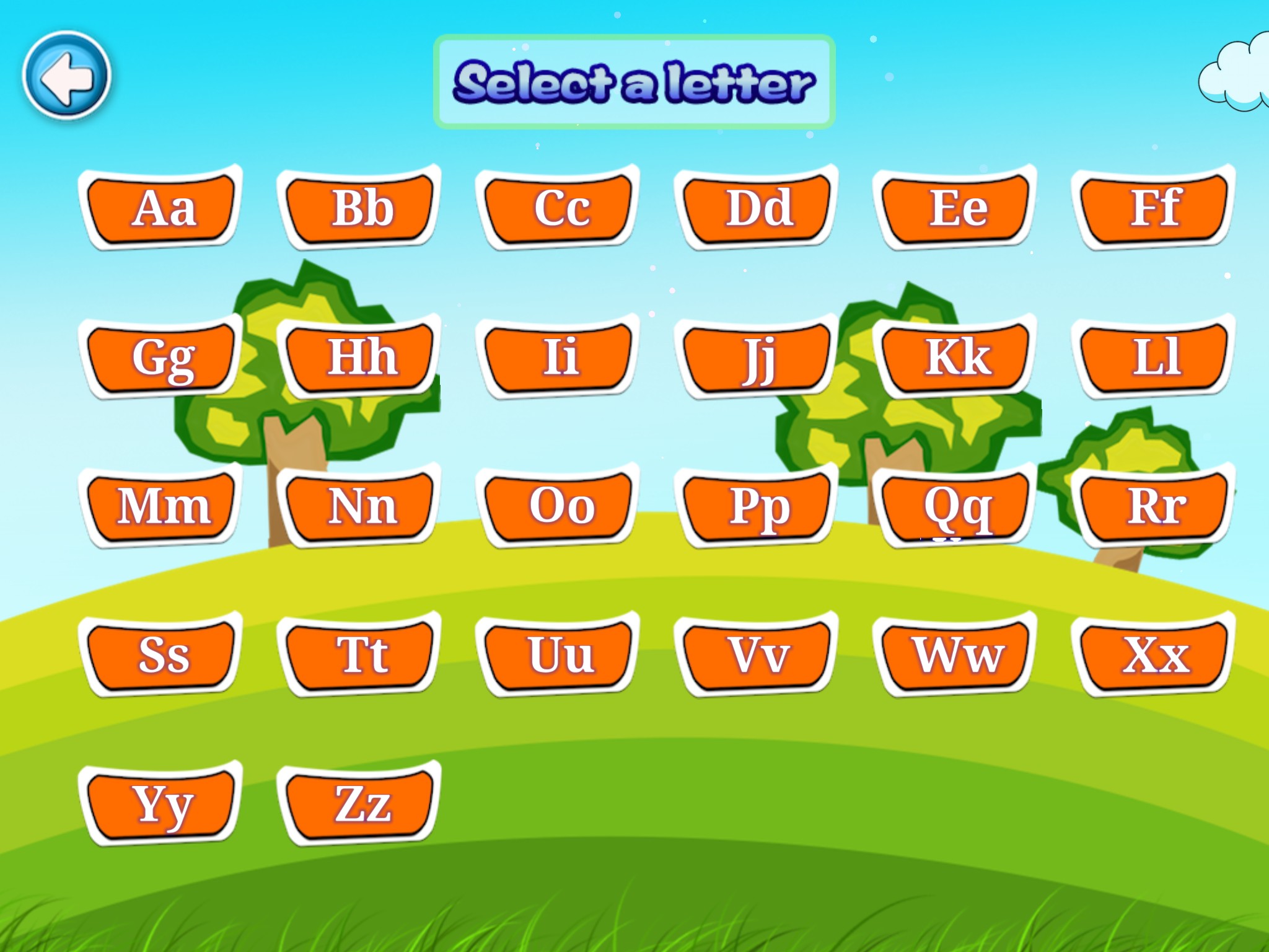 Categories of this preschool educational game focus on teaching the alphabets.