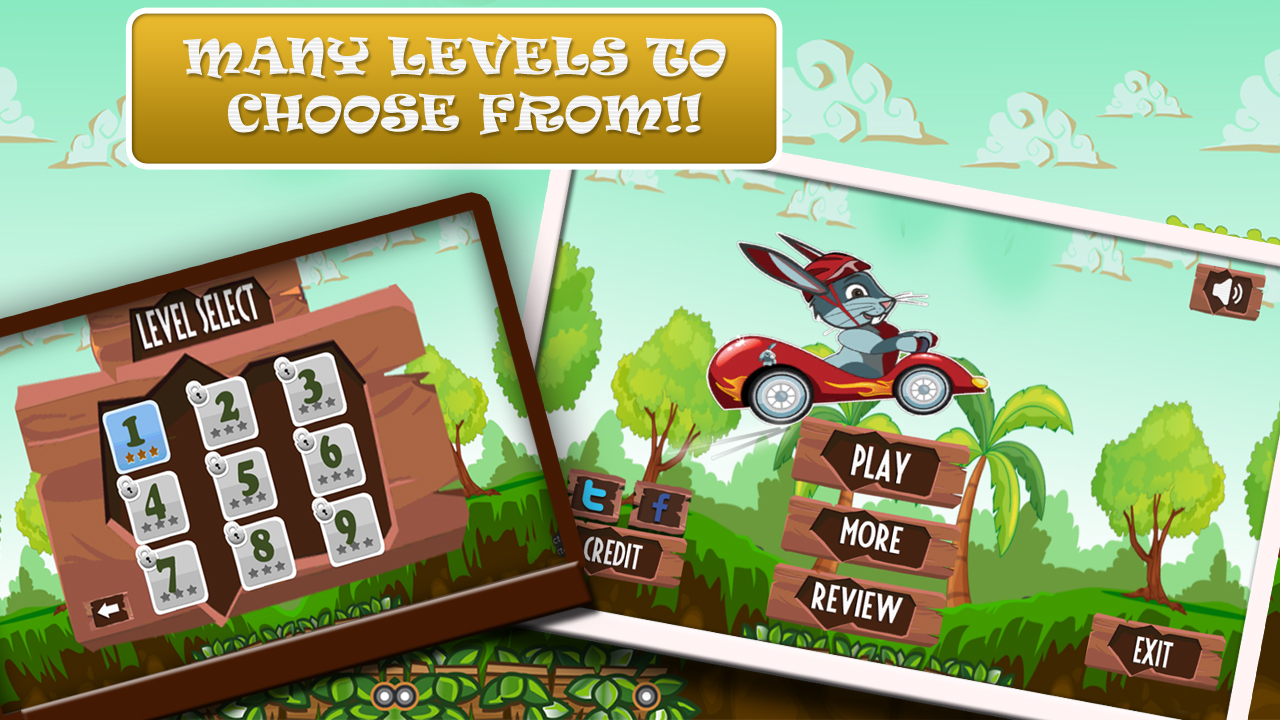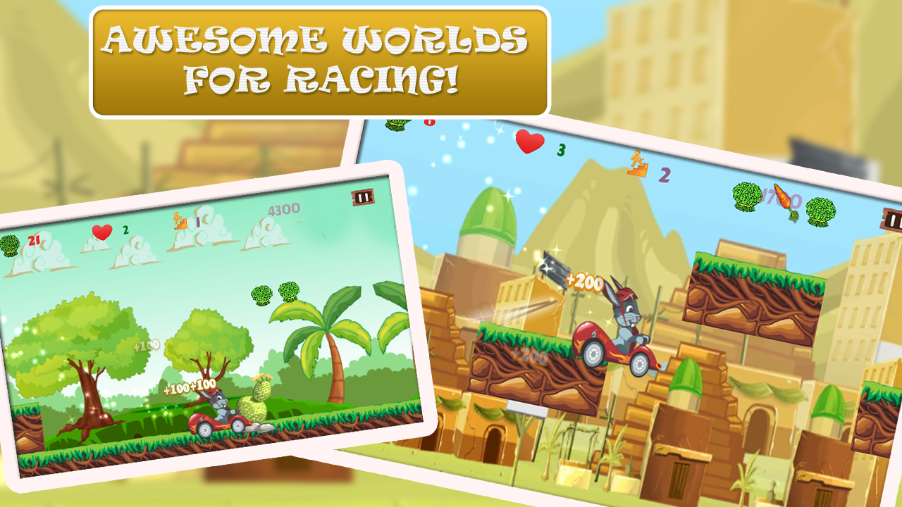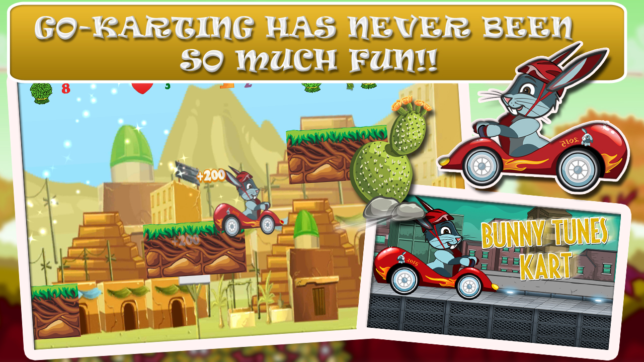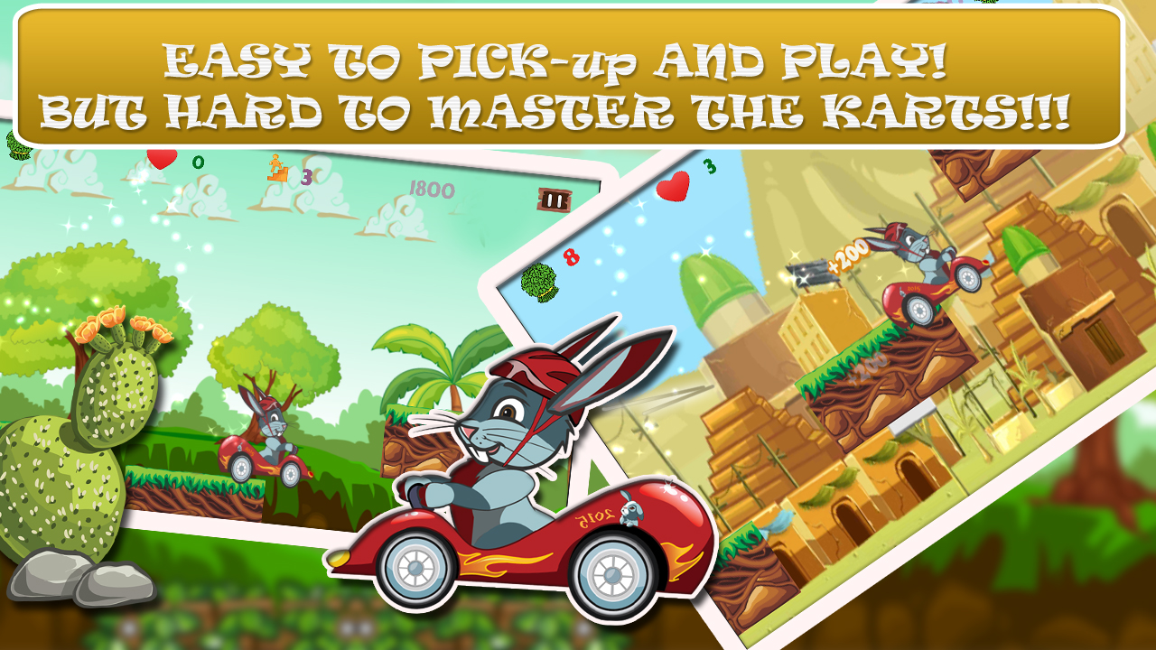 Bunny Loves Go-karting. A turbo Go-kart helps bunny to collect carrots and watercress.