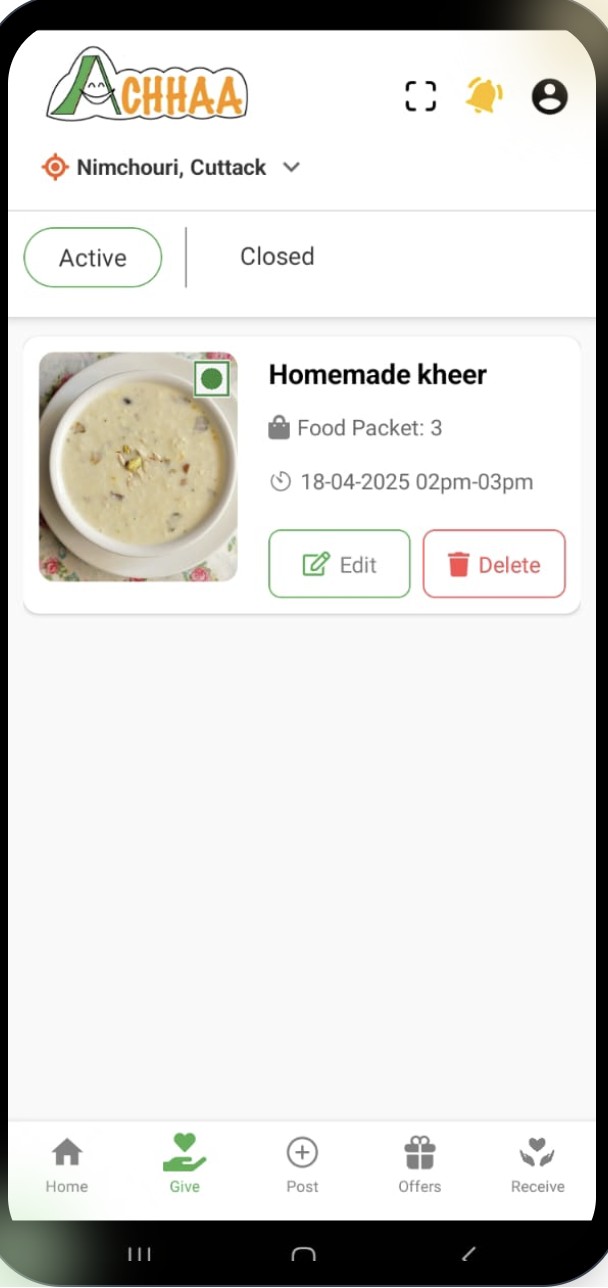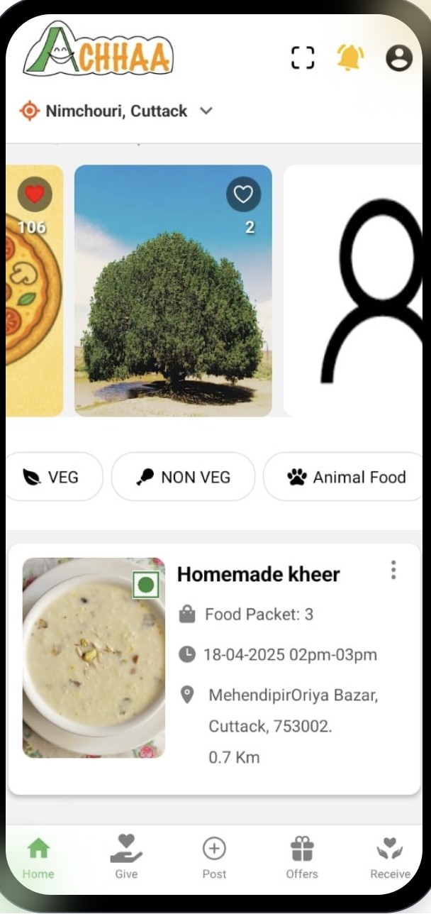 The Achhaa App is a free food sharing platform that connects donors with nearby volunteers, NGOs and animal feeders. If you have leftover food at home, after events or from a restaurant kitchen, you can upload it in a few clicks. Someone close to you will pick it up and distribute it safely.