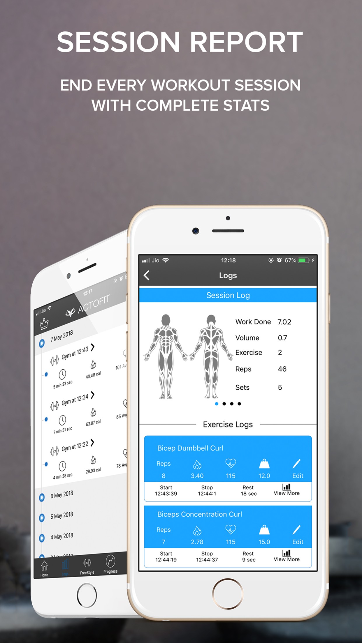 Plan your workout on the go and your exercises, reps, heart rate, form, exercise-specific calories measured on the fly and mapped to your App.