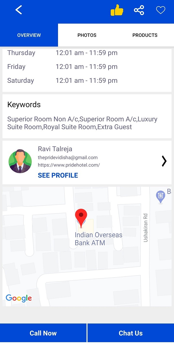 * Here you can share your business complete information (like: phone number, images. address, ratings etc.) with others & friends.