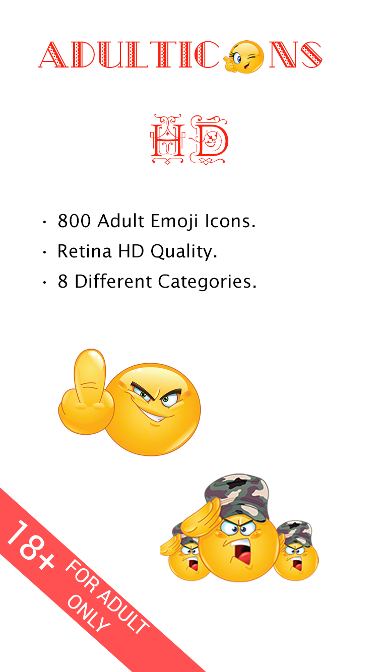 Our 800+ icons are drunk, angry, relationship, naughty, flirty, provocative, enjoy wild humor and gamble. This app contains the largest collection of funny and adult emoticons for texting.