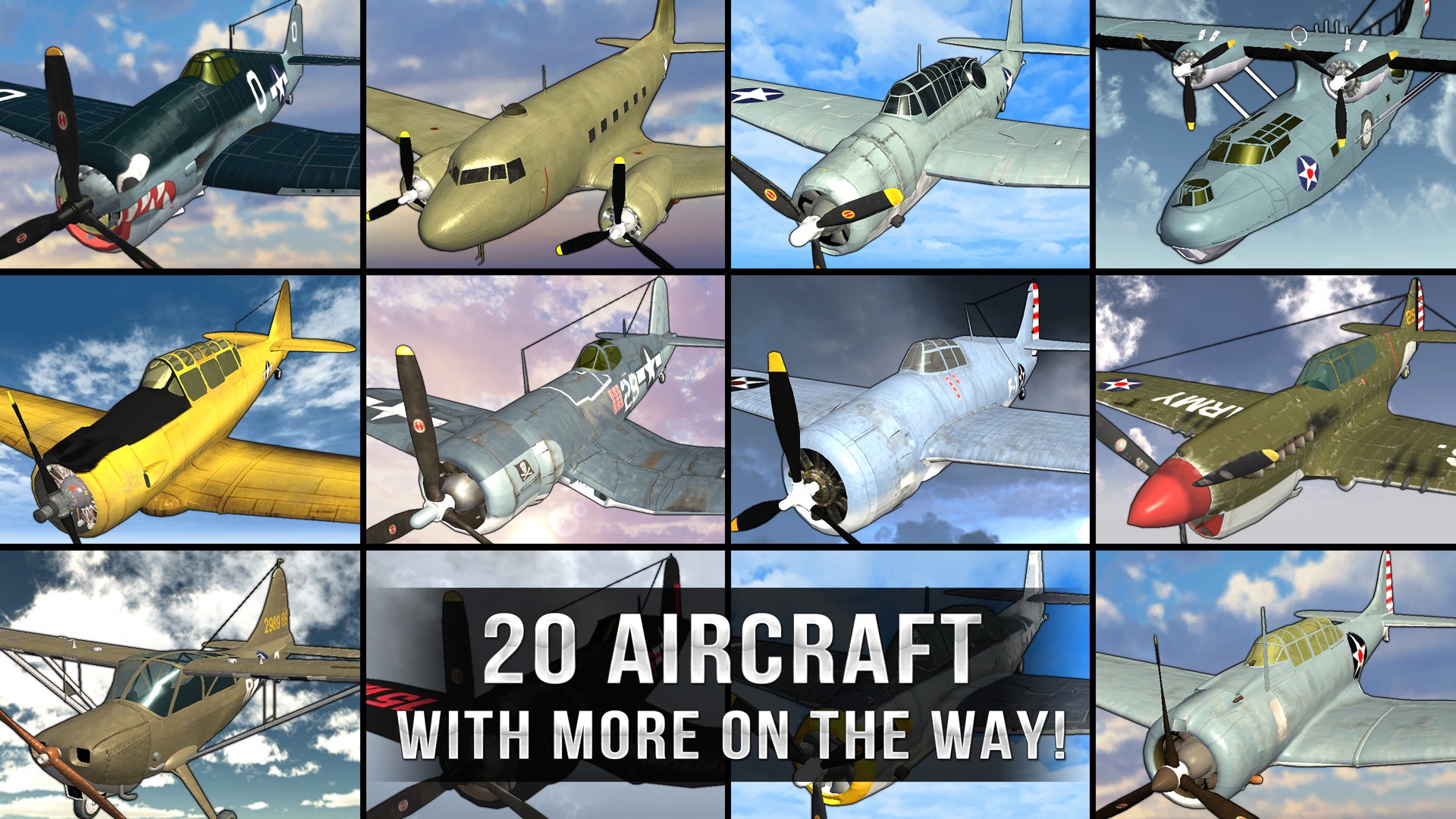 Fly over a dozen of the most iconic American aircraft from WW2. Train on the tame but maneuverable T-6 Texan, and earn you right to pilot the mighty F4F Hellcat and F4U Corsair. Conduct amphibious ops in the PBY Catalina, and send the enemy to the bottom of the sea in the TBF-1 Avenger. More planes coming soon!