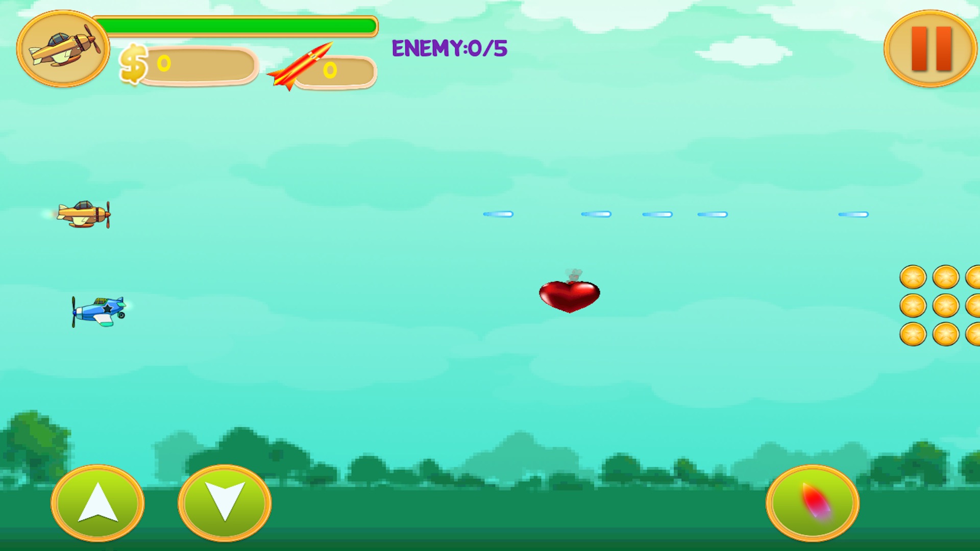 ★ Collect hearts for health recovery for your jet fighter