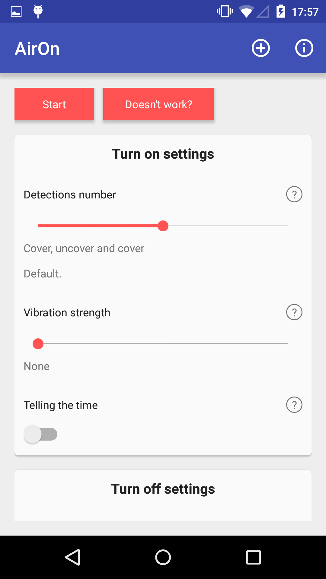 - Vibration settings: choose a vibration strenght when turn on/off the screen with AirOn;