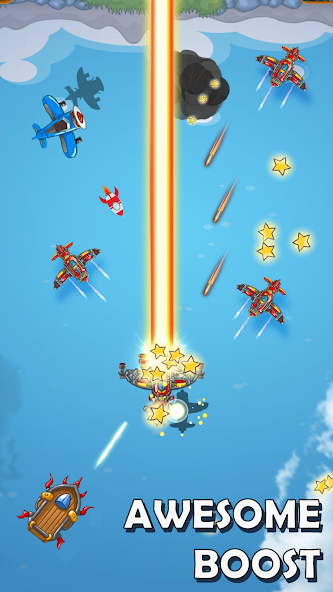 Your pilot is wanting for your finger direction. Use your finger and try to shoot ‘em up all enemy aircraft, watch towers, tanks, warships, and many more. After they are destroyed, they are given starts and powers portion. Use all to upgrade your aircraft weapon, gun, missile, wings, and engine. So, don't forward the evil forces and trigger them to shoot down their sky troops. Every moment is like a suffocating battle! You will play this airplane strike fighter force. Then you will not want to play other aircraft battlefield games! Download now and enjoy the classic sky war mission games.