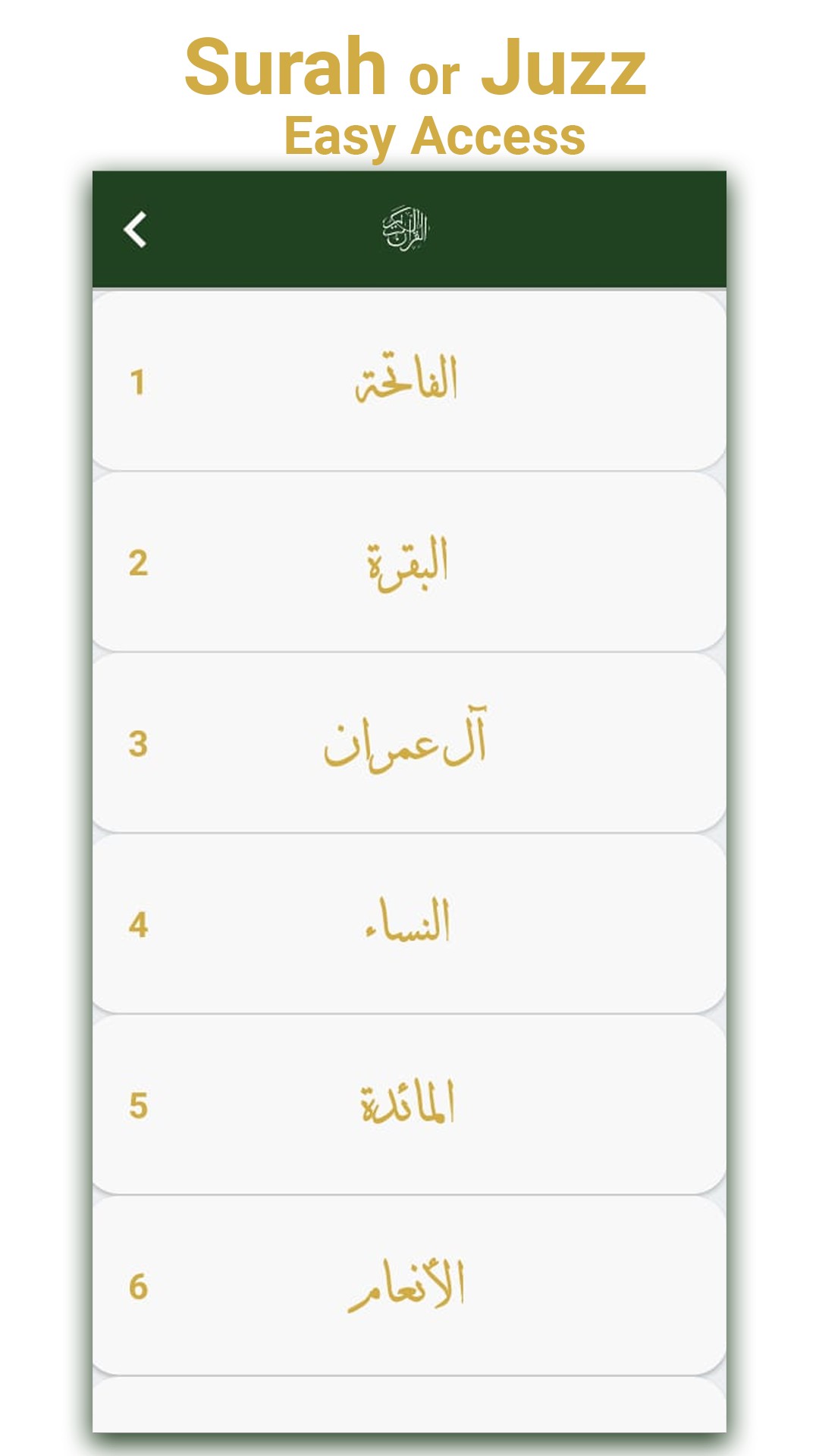 3- Surah or Juzz : Quran Majeed is equipped with a surah and juzz list from where everyone can easily access their desired location in the Quran Karim app.