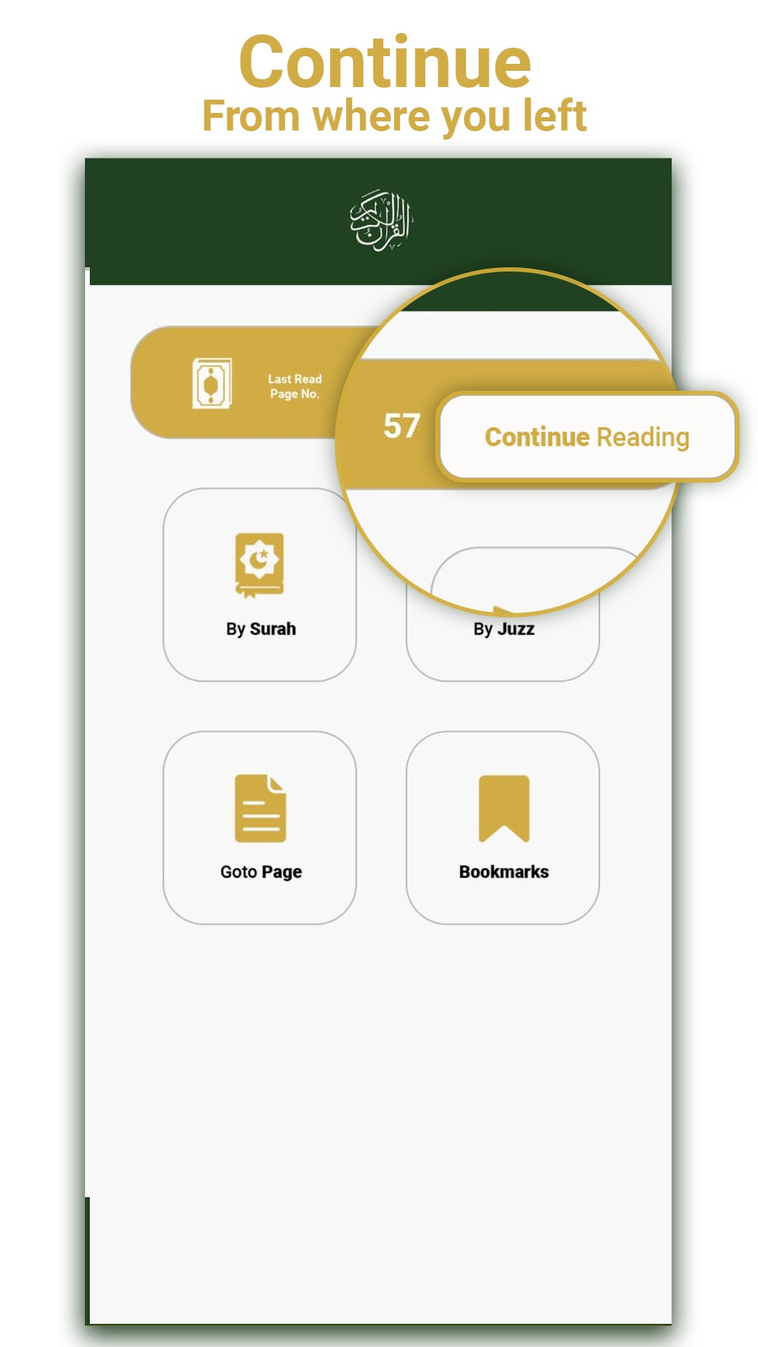 Quran Sharif recitation is a daily routine for most of the Muslims so keeping it in mind we have added bookmarks option inside of Al Quran app. So now it is easy for everyone to start their Quran Majeed recitation from where they left at the last time. We have also taken care of the Muslims who forgot to bookmark the page when they left the app so the Al Quran app will automatically remember the page you left the last time.