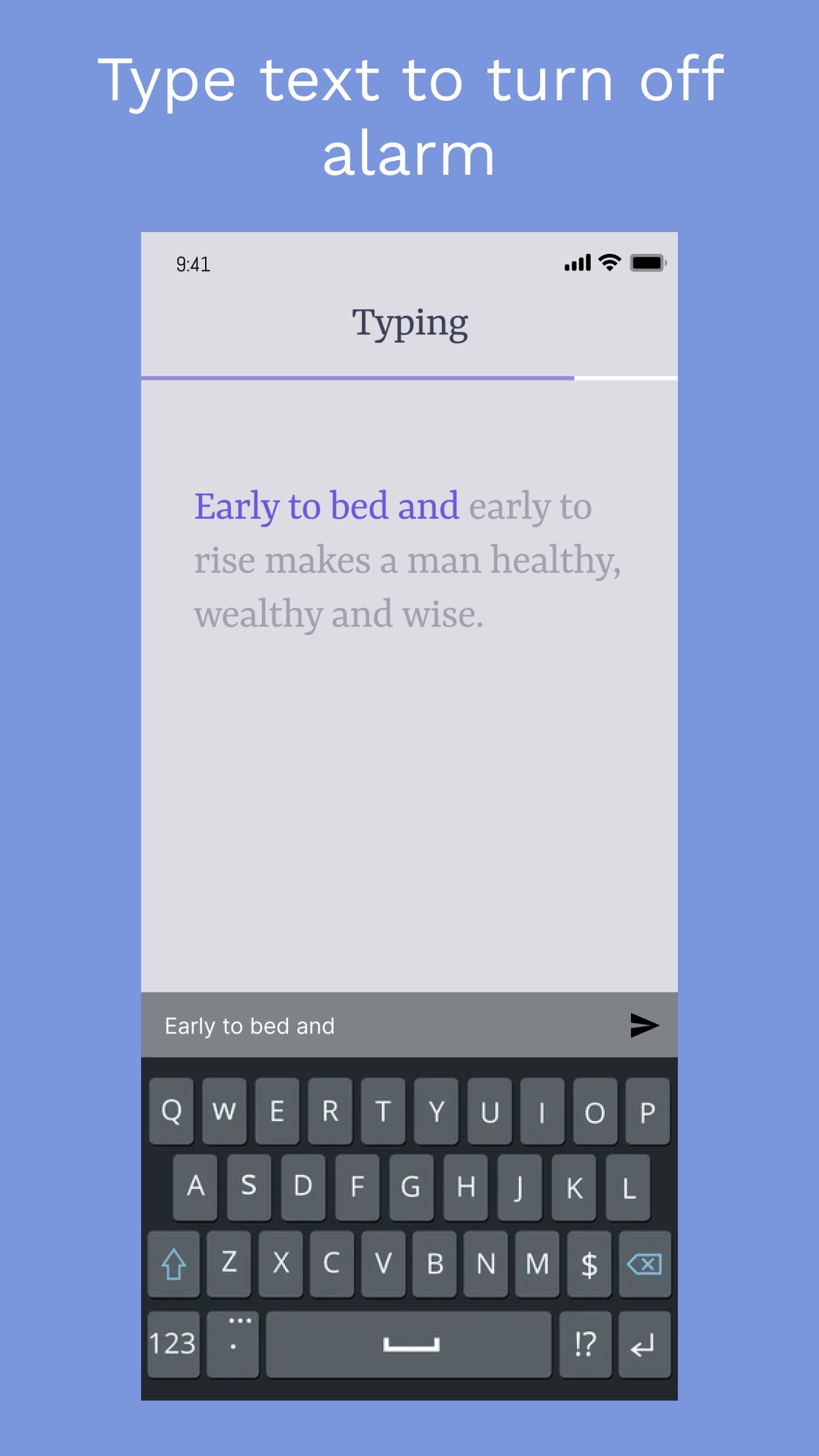 ■ Typing Mission - If you think every morning motivational text can make you motivated for the day long then this feature is for you. Type a motivational text message to stop the alarm and make yourself motivated. you can choose a text message from three categories Easy, Medium, or Hard.