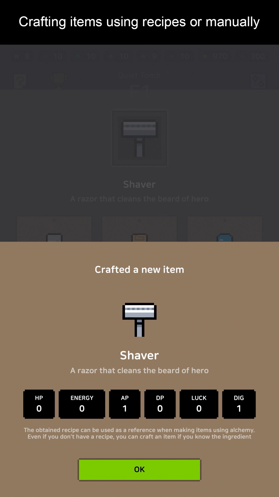 * Use the materials you collect to create various objects using alchemy and explore dungeons.