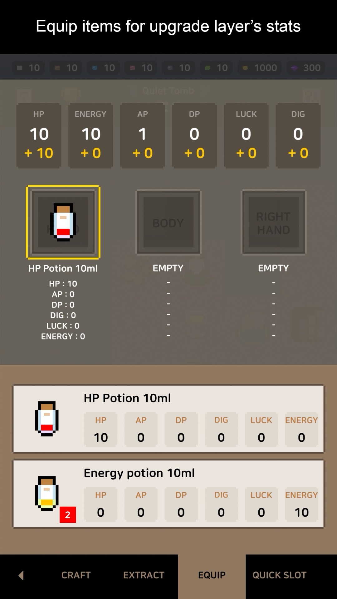 * All items, including alchemy-made food and potions, can be equipped to increase the player's stats.
