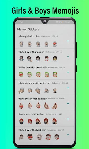 Memoji stickers for WhatsApp, WAStickerapps uses all kinds of stickers in the app to give stickers to friends, such as girls stickers,emojis for iphone, new christmas stickers, funny stickers, nice minds, shows stickers, love stickers, smiley face. The Memoji stickers app contains a huge number of numbers and various stickers. You can quickly exchange stickers.
