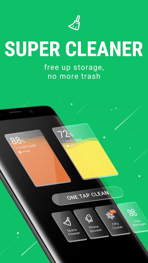 ►One Tap Clean -- You just need only one-tap to quickly clean all Cache junks (System caches, App caches), Residual junks, File Junks (Log file, Temp file, Empty file, Invalid File), Ad junks, Memory junk to free up more storage and memory.