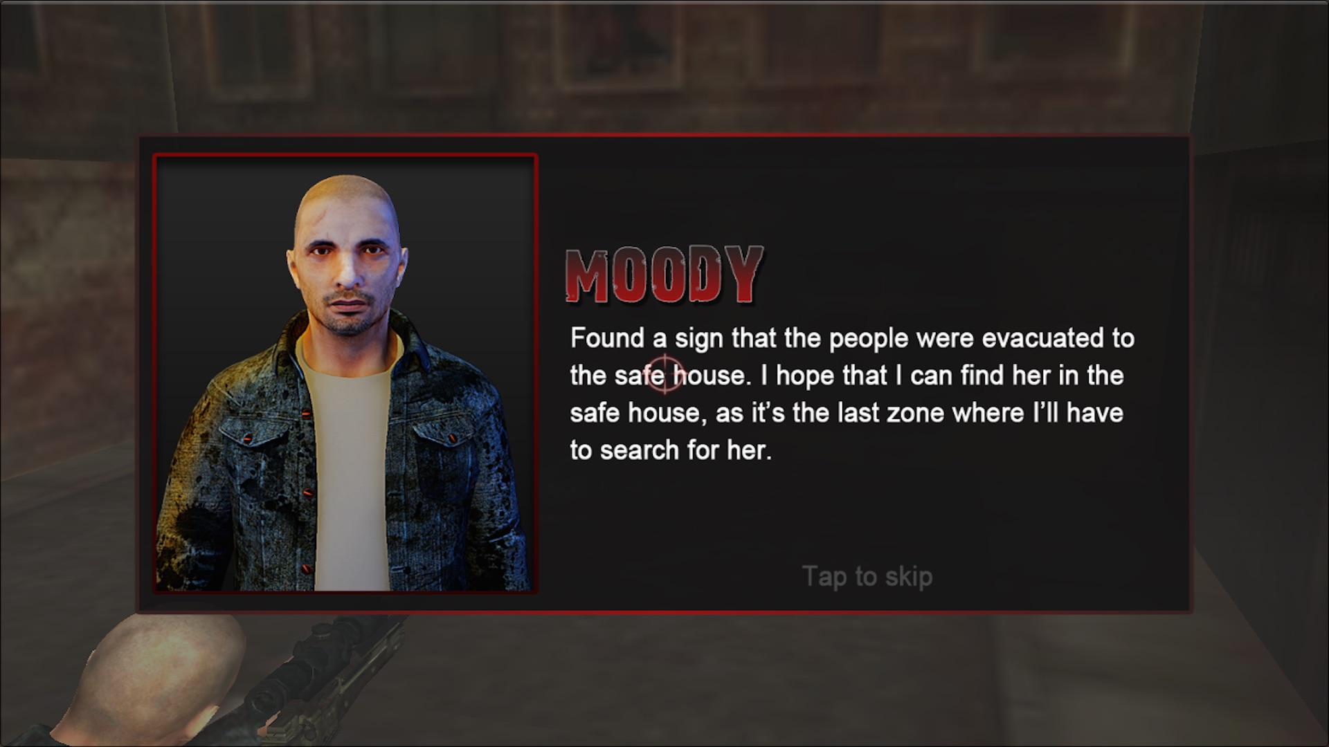 Experience the real apocalyptic town environment with walking dead (zombie) all over the area hungry to kill and feed on your body. Fight and Survive the zombies attack and search the town to find and save the Zoey from these deadly creatures. Its time to show courage and skills as its a race against the time with the limited resources and a lot of dangerous zombies to fight.