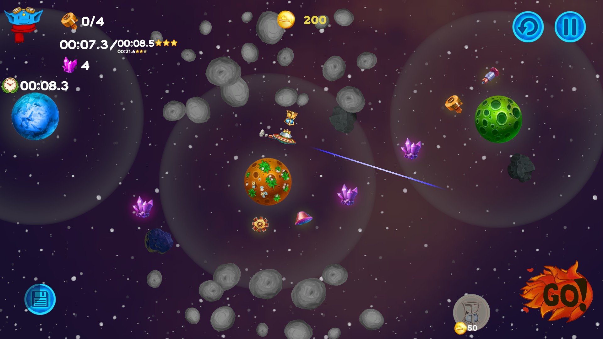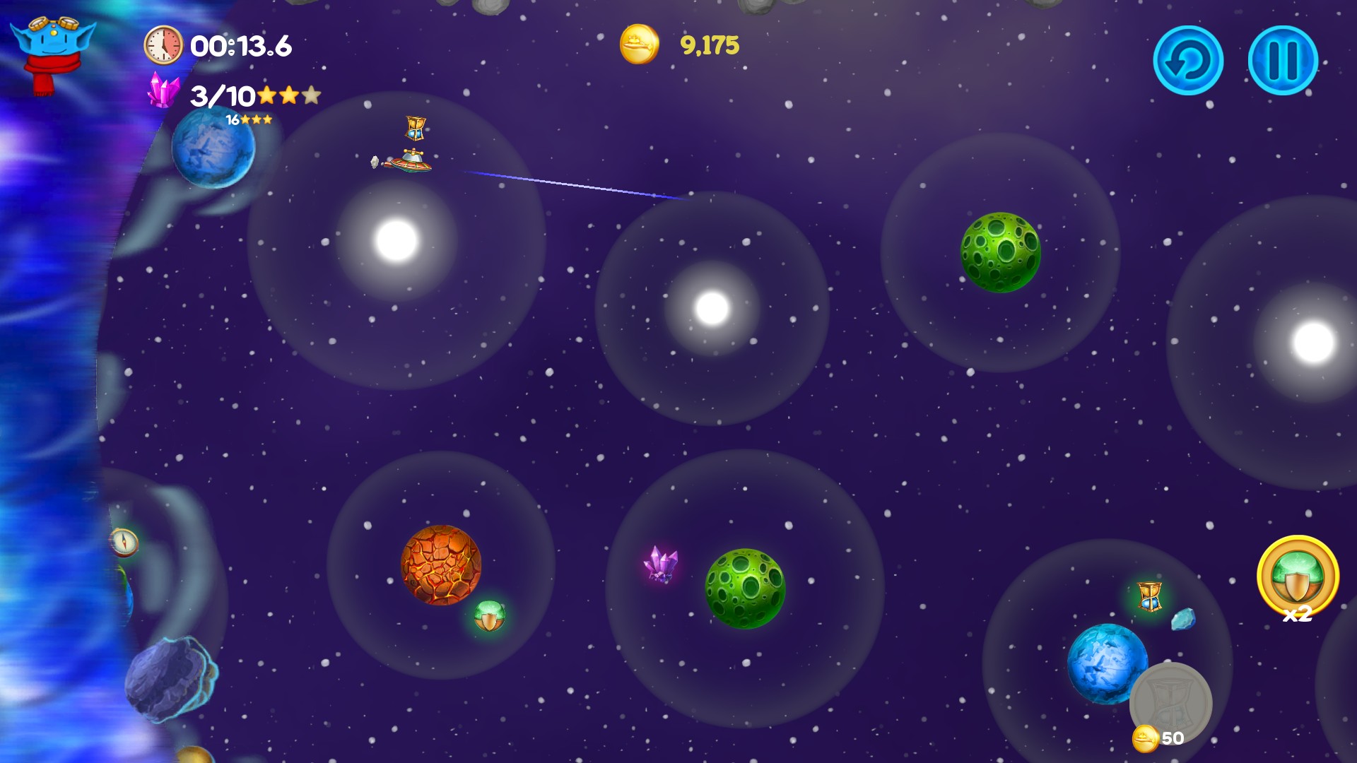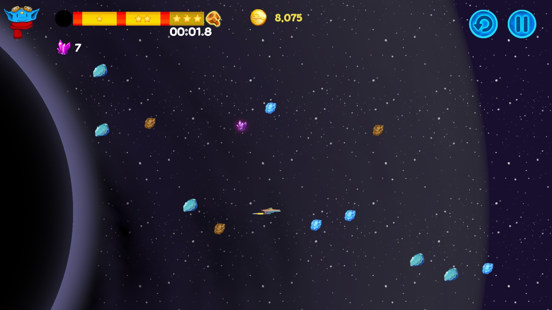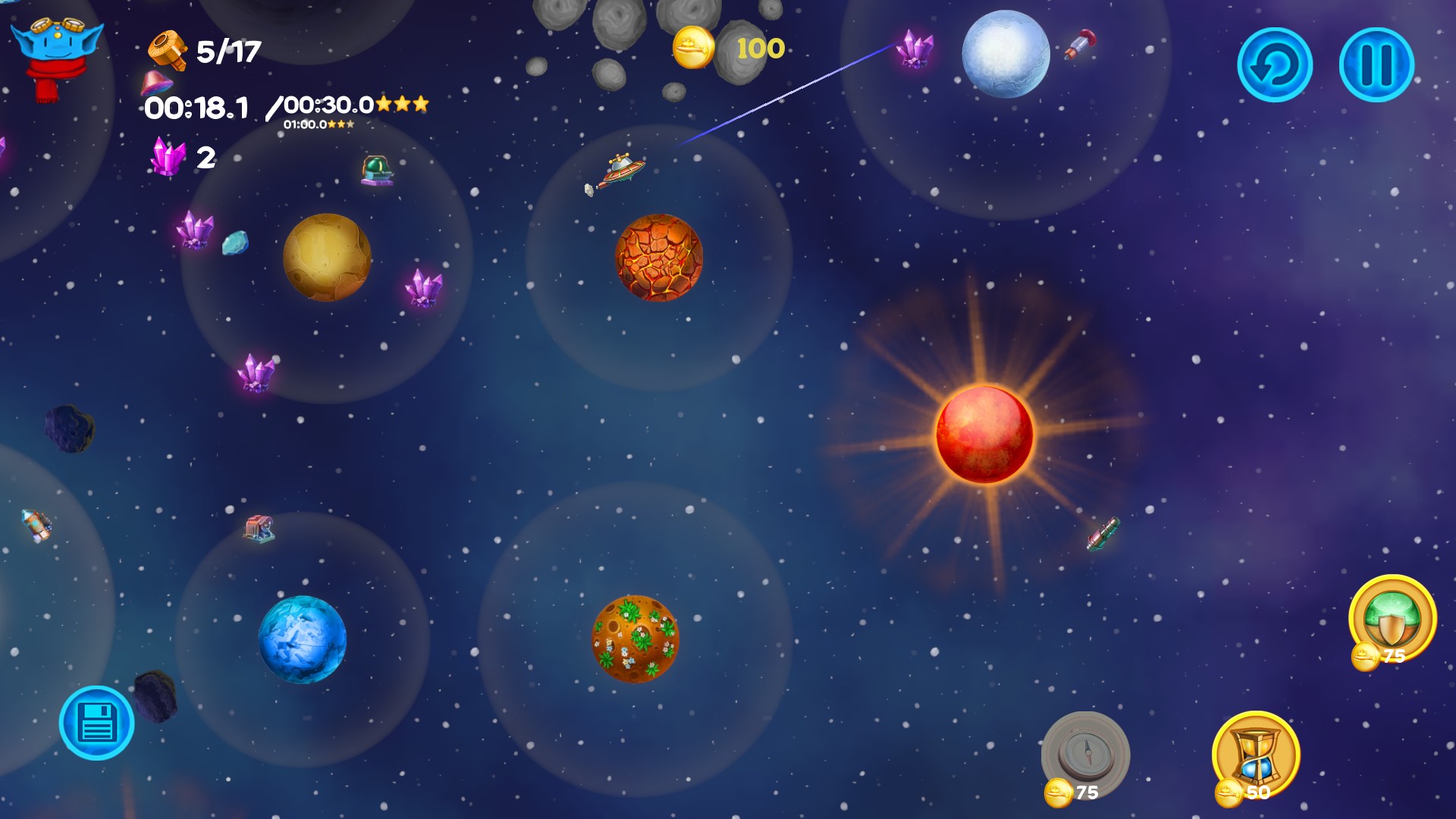Among the Asteroids is an arcade with elements of puzzle for the whole family. You play as Lunny, cute alien pilot who travels through the space, collecting parts of the crashed ships to build large spaceship and to take his people to the new safe planet Placidus. Lunny mustn’t only avoid dangers lurking in space but also learn how to use them to complete his mission. He has to deal with asteroids, black holes, pulsars, exploding stars and even space magnetic tornado to make his people safe. While passing the scenario you will unlock two endless modes. Scoring and achievements systems will help you to show you are the best ;)