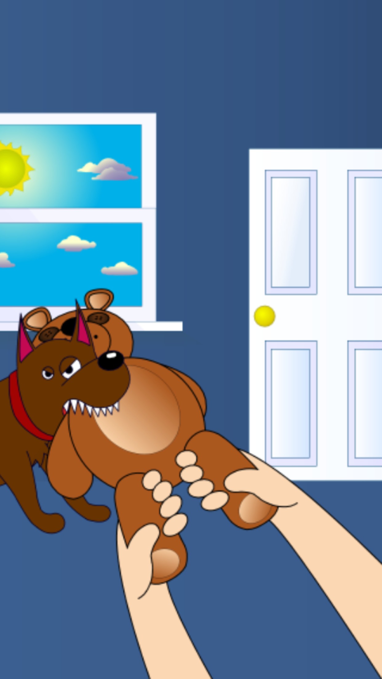In order to rescue a teddy bear and turn off your alarm, you will first need to wrestle the teddy bear from the clutches of your angry pet dog in a short game of tug-of-war. This is the app's way of making sure you are awake before you turn off your alarm.