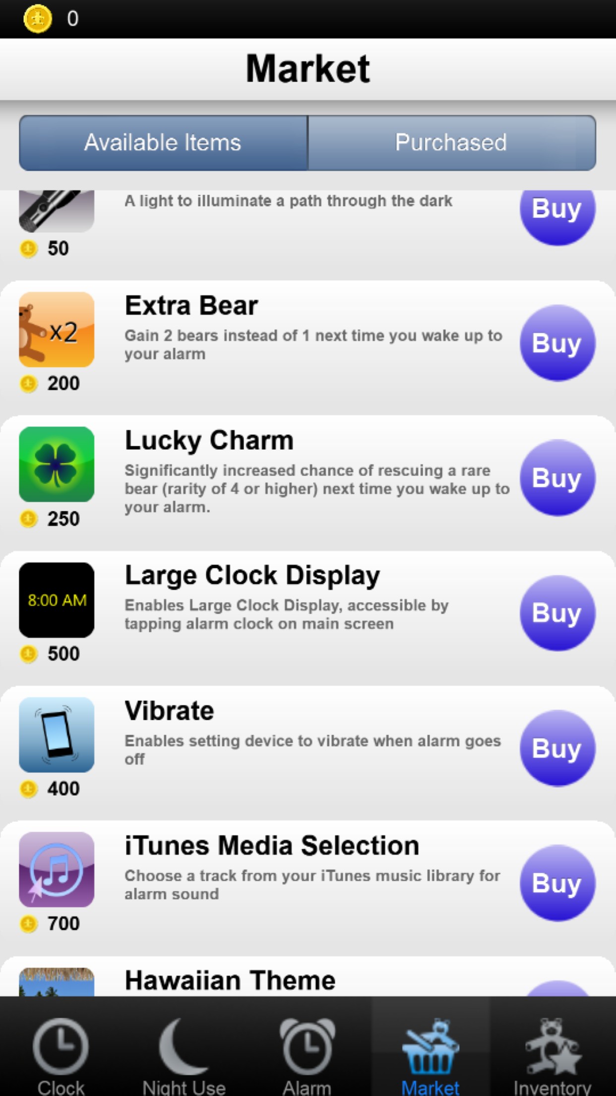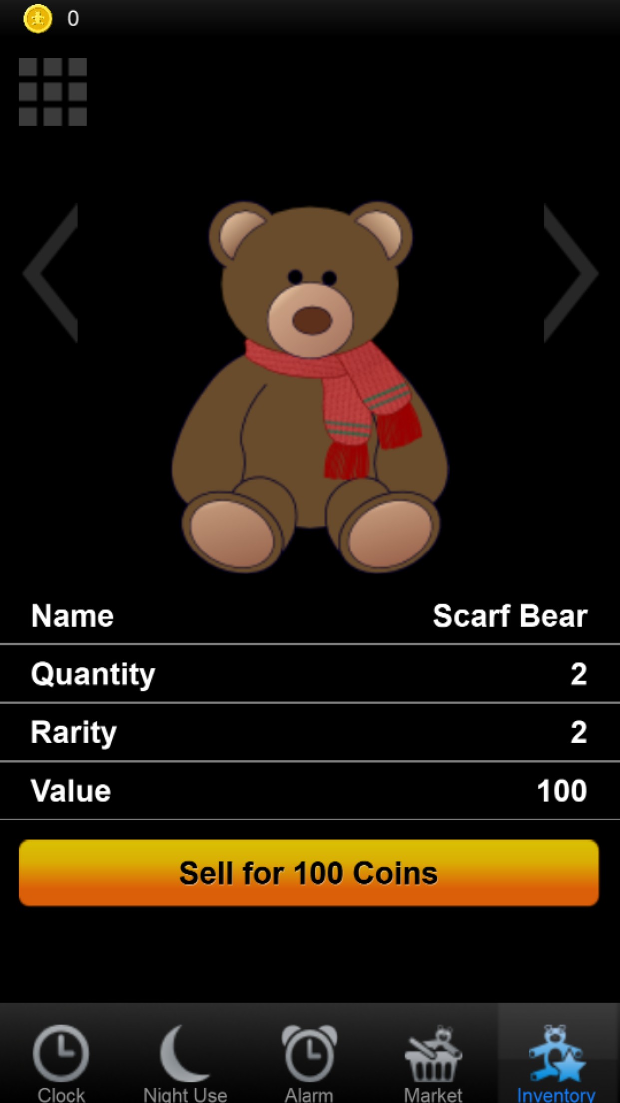 Each time you wake up to your alarm, you will gain a unique teddy bear to add to your bear collection inventory. Collect all sixteen teddy bears in order to become a master bear collector or sell your collected bears for extra coins.