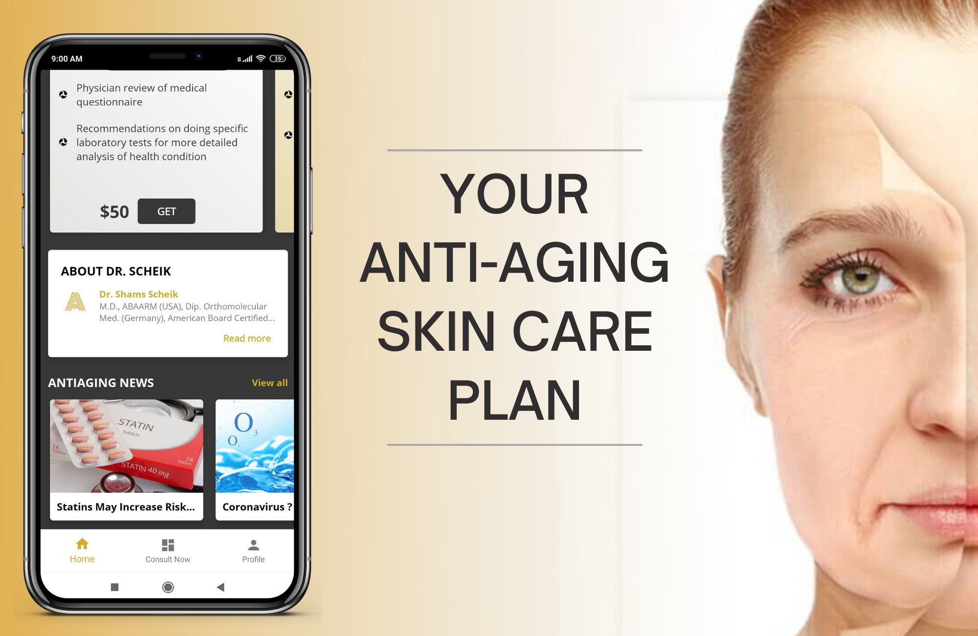 Anti-Aging Doctor is a mobile app for taking medical consultation from an American Board certified physician. You will get a personalized anti-aging medical report (PAMR) which includes recommendations on individualized anti-aging supplements, dietary modifications, and exercise programs to help you “look and feel “ younger than your age.