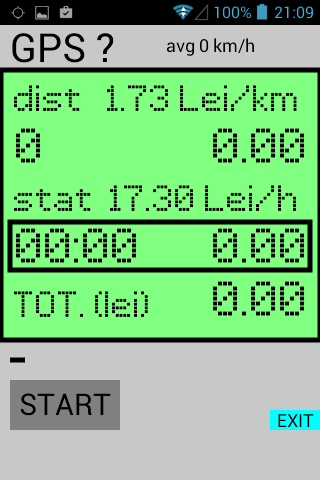 Functioneaza ca si un aparat teximetru, dar se bazeaza pe semnalul GPS. Nu poate fi pornit fara acest semnal prezent. Culoarea verde a butonului START indinca aceasta posibilitate de pornire.