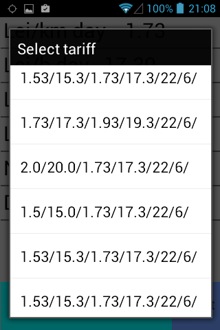 Se poate selecta din mai multe seturi de tarife prestabilite.
