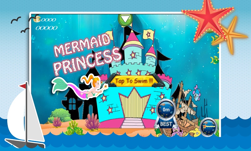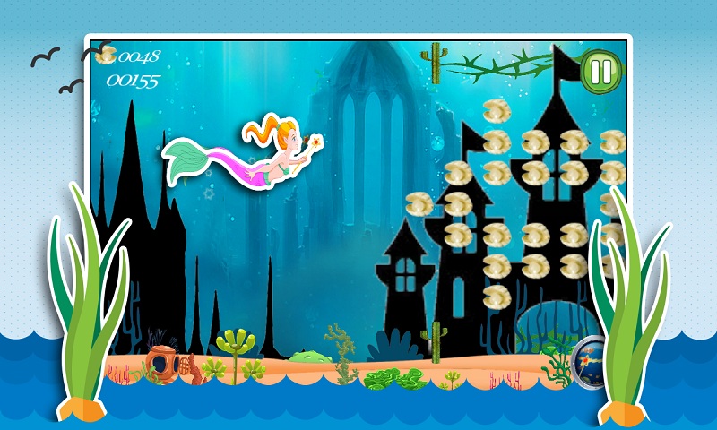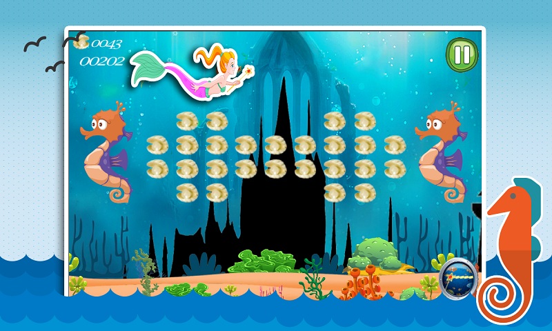 Collect the glittering pearls to purchase more power ups and also get more power ups coming along the way. Using powers ups swim faster than ever. Mermaid princess sea adventure is endless sea adventure game. Travel more and reach a high score in google leaderboard.