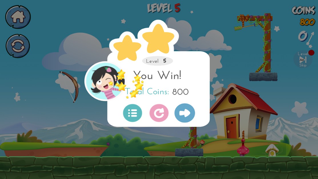 ● Shoot the rope knocking down bottles using Bow and Arrow