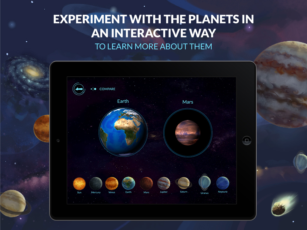ARLOON Solar System lets you delve into the amazing world of astronomy in the most educational way imaginable. Do you want to discover what there is in the universe? Discover the celestial bodies that make up our planetary system as if they were at your fingertips.