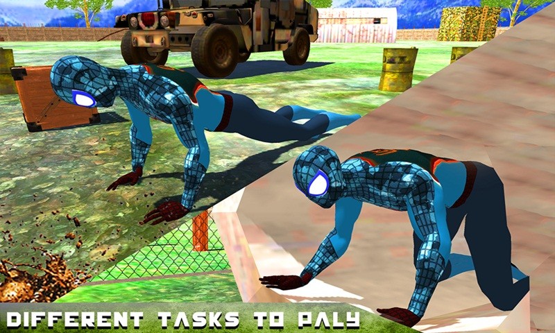 Welcome to army training camp where spider hero trained as army soldier and get ready for the final combat against evil forces. In this army spider hero training camp simulator you will train for different current skills of fight to take payback in war condition for grand city innocent peoples. You are a spider hero fighter who has to face hard difficulties and obstacles during tough training.
