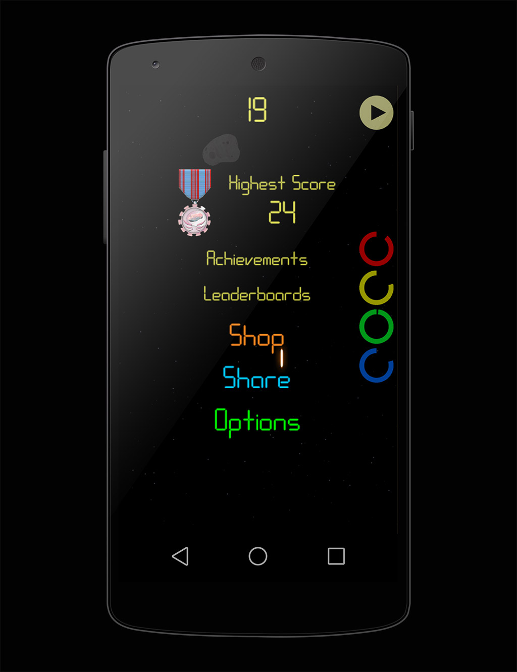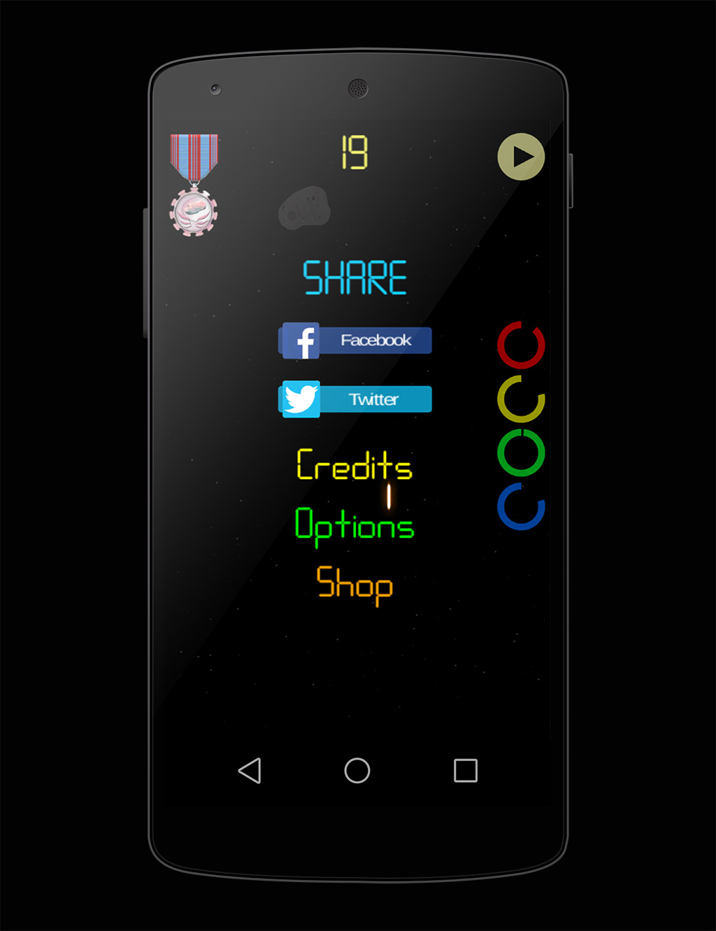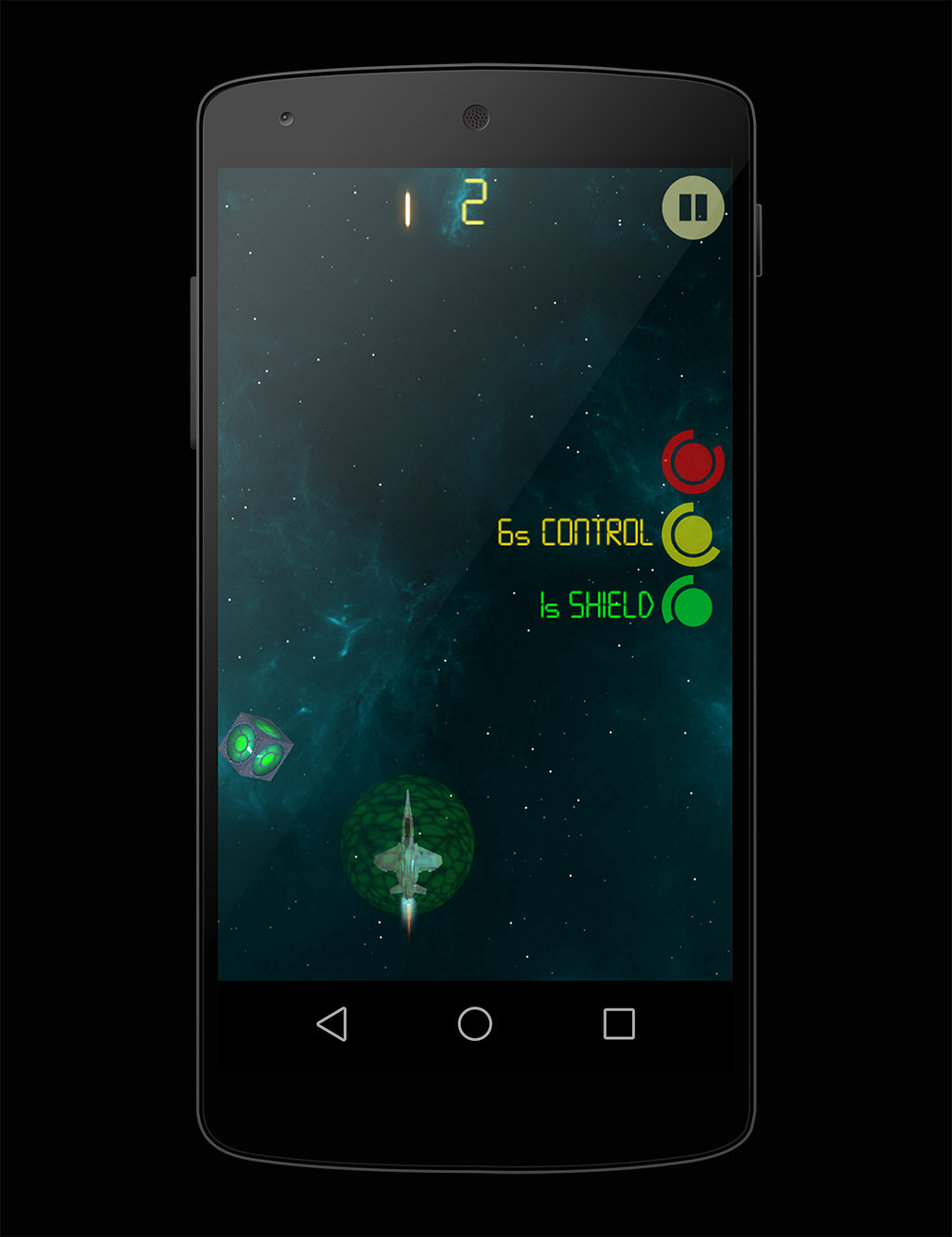 -Shield protects the ship. When it is activated asteroids are smashing into it and again are added to your score.