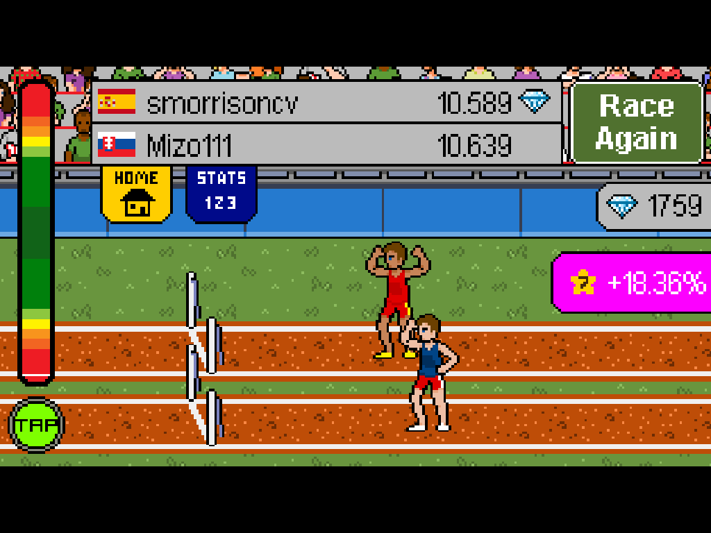 Collect Diamonds for winning and use these to buy Stars to upgrade your athlete.