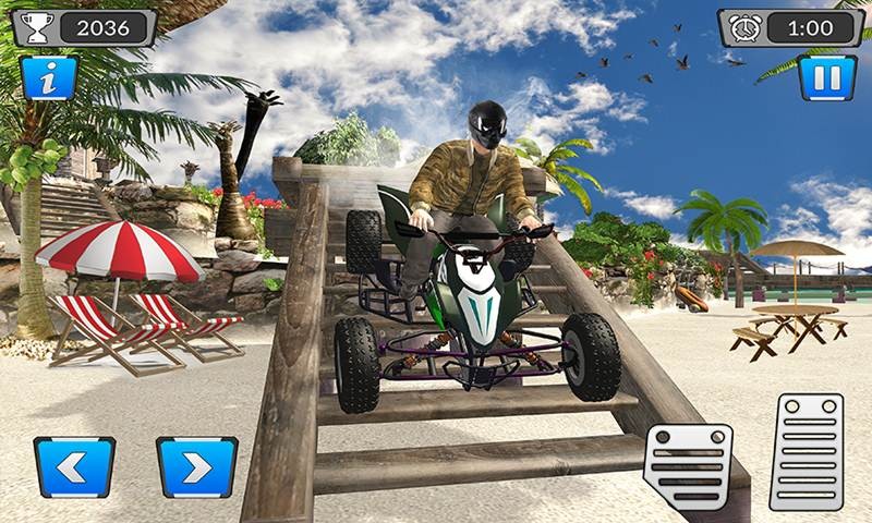 Play this fun and exciting racing simulator game with an amazing view of the beach. Collect checkpoints and increase your bike riding experience while playing atv beach quad bike racing mania: motorcycle stunts simulator. Complete the challenges missions within the time limit and prove yourself to be best quad bike ATV motorcycle rider in the world.