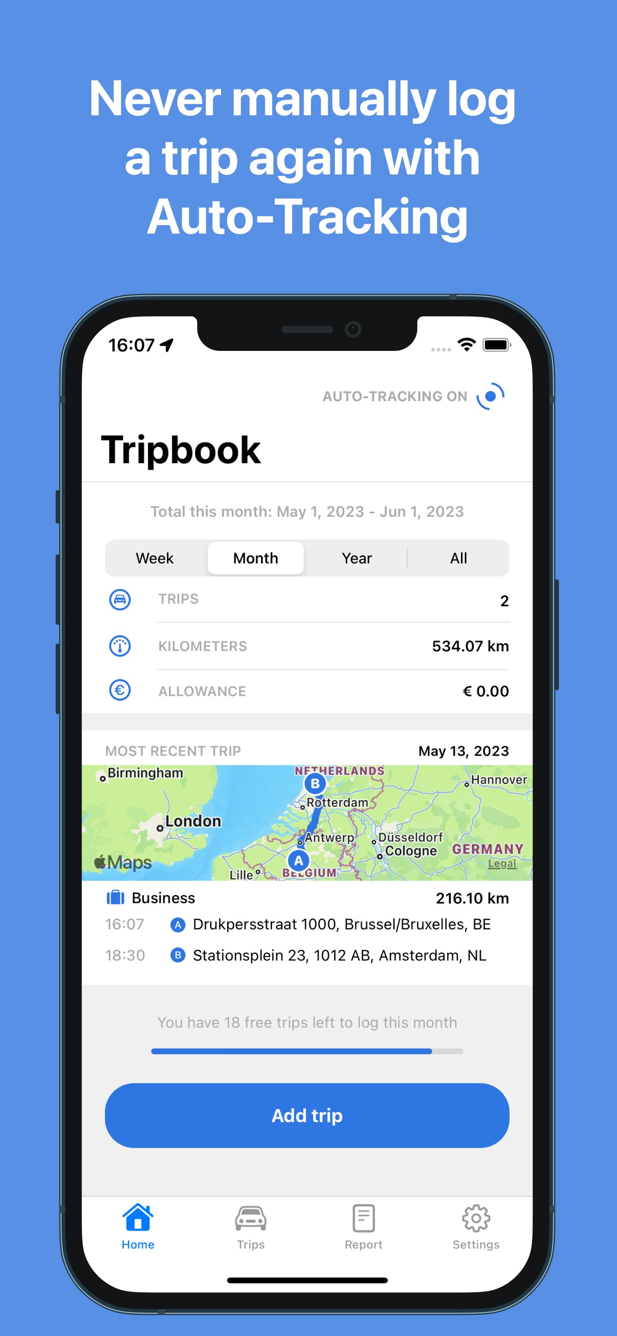 Tripbook is a mileage tracking app exclusively developed for iOS. The app aims to enable users to easily track their trips, using an intuitive user interface, automatic trip detection, and secure data storage in iCloud. With Tripbook, users can effortlessly classify their trips and create reports. Download Tripbook today and simplify your trip tracking experience.