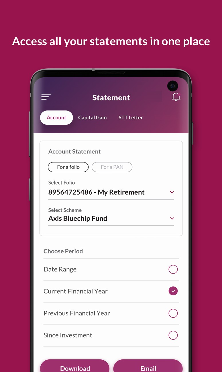 The Axis ELSS App simplifies your journey to maximize tax savings. Invest in top-rated ELSS funds, manage portfolios, and receive tailored advice all in one place. With easy navigation and comprehensive tools, it’s your ultimate app for tax planning and investment tracking.
