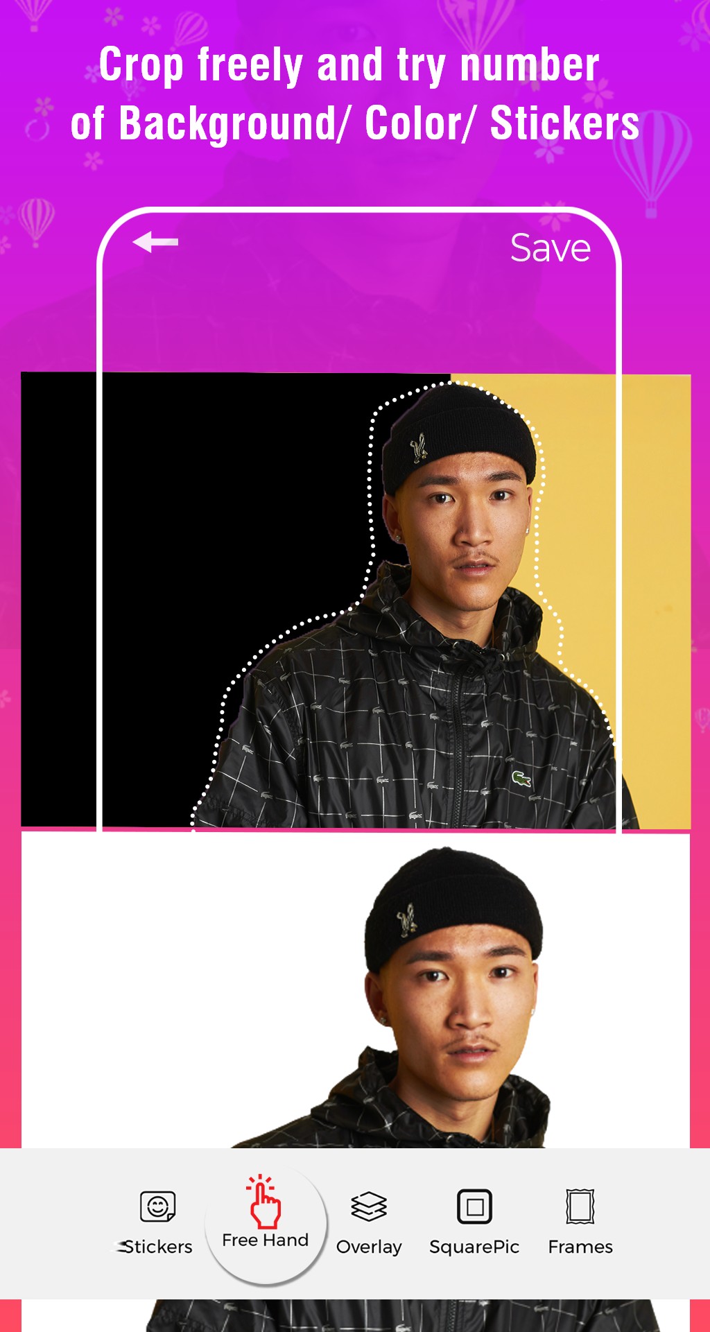 Effects: B623 lets you add effects like stickers, overlay, square pic, frames, and freehand crop.