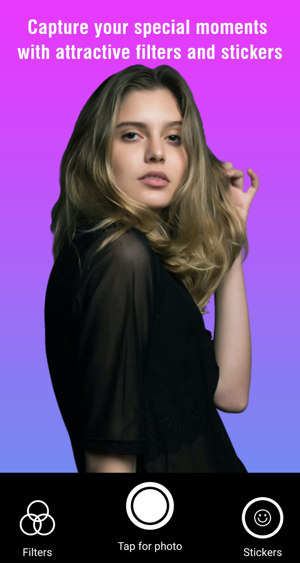# Camera: The B623- Selfie Camera Plus Photo Editing Expert lets the users directly add filters and stickers before capturing the photo or image.