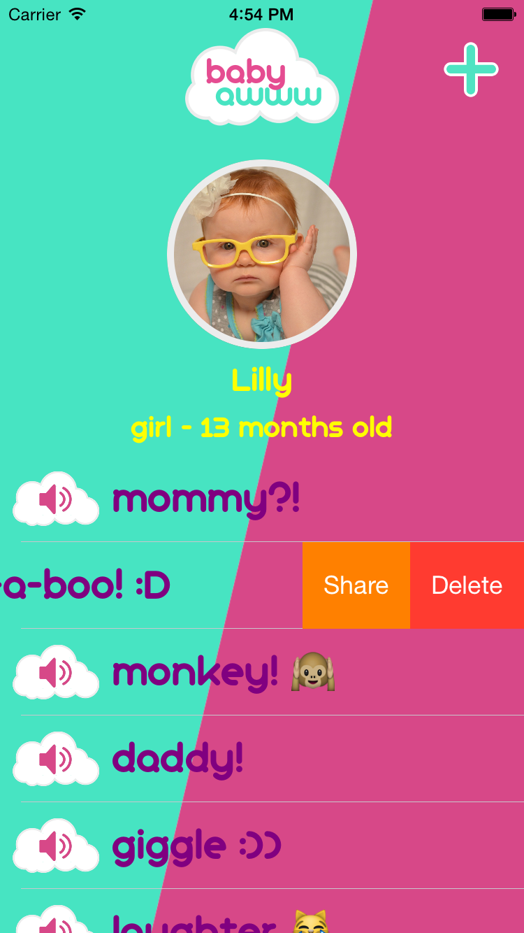 Babies bring joy to our life, even more if they are ours! Baby awww gives you the possibility to keep those joyful moments by recording the first words of your baby boy or baby girl, and keeping them in one place!