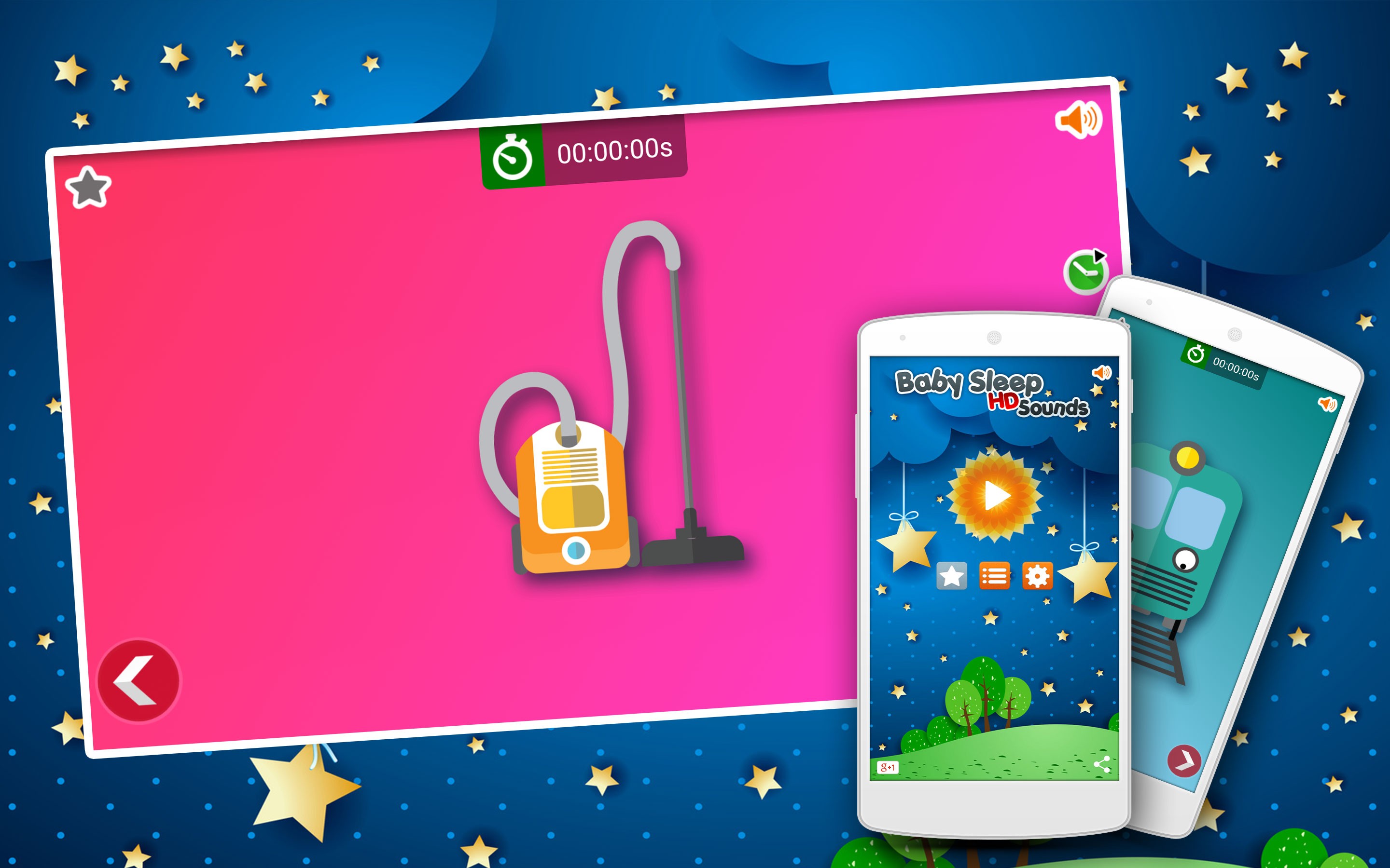 Using the application is very simple, just put the phone in a suitable distance from the child, choose a sound and set a timer that turns off the application after a specified time. After a short time the child should calm down, stop crying and fall asleep quickly.
